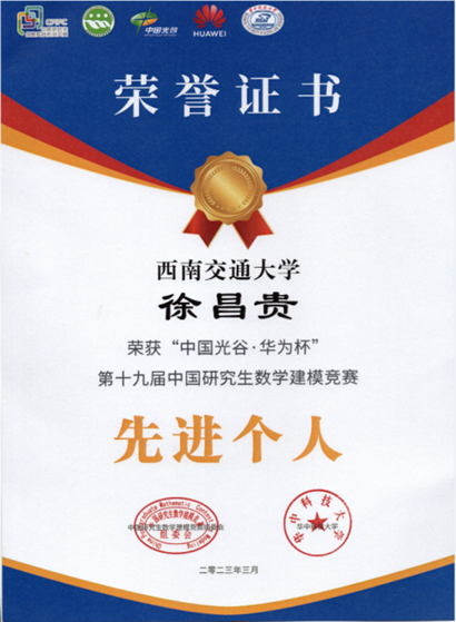 徐昌贵,男,副教授。从1998年至今,担任kaiyun开云官方网站历届数学建模竞赛指导教师,指导学生共获得国家一等奖10项,国家二等奖14项,省奖26项。获得全国百名优秀数学建模指导教师荣誉,第十九届中国研究生数学建模“先进个人”荣誉称号。