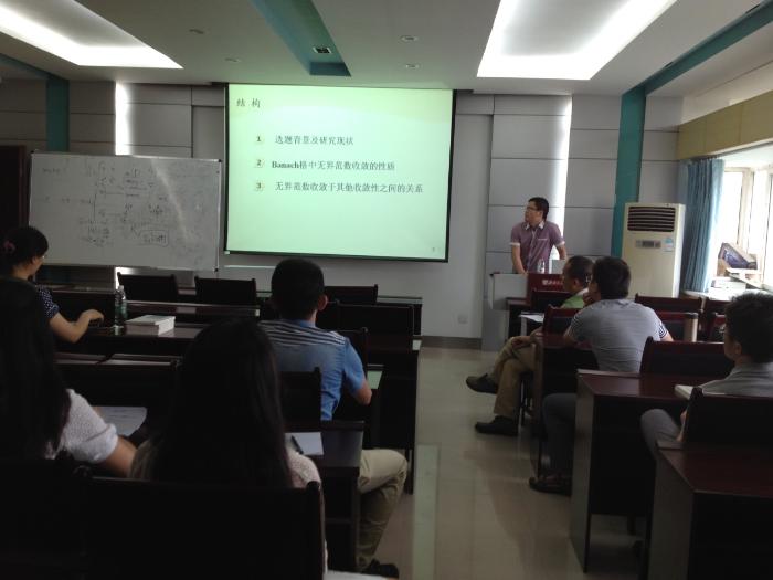 7月2日下午,kaiyun开云官方网站数学系2013级硕士研究生毕业论文中期检查工作在X2511学术会议室顺利完成。出席此次论文指导活动的有学院副院长陈滋利教授、副院长杨晗教授、院长助理范小明教授,数学系党支部书记冯颖老师,陈金喜副教授、樊明书副教授以及部分青年博士教师。
