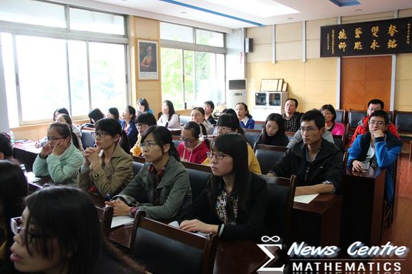 报告会上半场Marcel de Jew 教授讲解了关于泛函分析中Banach 格的问题。听完报告,大家踊跃提问,Marcel de Jew 教授耐心的回答了同学们的问题。 报告结束后,学生们还向Marcel de Jew 教授咨询了在莱顿大学攻读博士学位的有关事项。