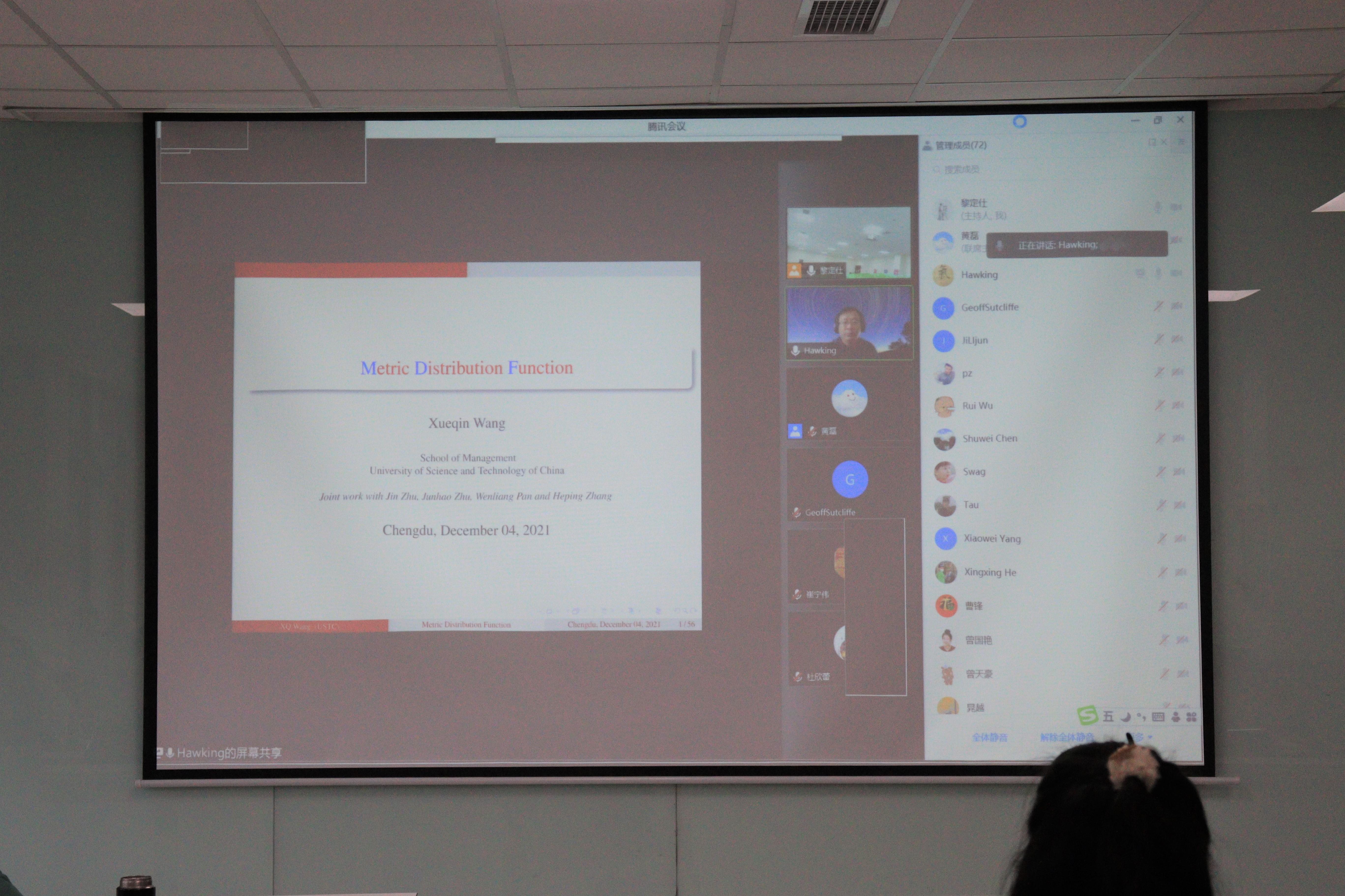 上午9时20分,来自中国科学技术大学的王学钦教授以“度量分布函数”为题,报告提到:统计推理的目的是利用观察到的样本来了解一个总体的未知性质。它已经成为科学推理的一个重要步骤。非参数统计推断的一个组成部分是分布函数。利用测度理论中的对应定理和统计学中的Glivenko-Cantelli和Donsker性质将分布函数与样本联系起来形成一个有向闭环,这种联系为统计推理创造了一个范例。然而,现有的分布函数是在欧几里得空间中定义的。这些分布函数不再方便使用或适用于描述快速发展的复杂性质的数据对象。因此,必须在更普遍的空间中发展分布函数的概念,以满足新出现的需求。注意,线性允许我们使用超立方来定义欧几里得空间中的分布函数,但是没有度量空间中的线性,我们必须使用度量来研究概率度量。