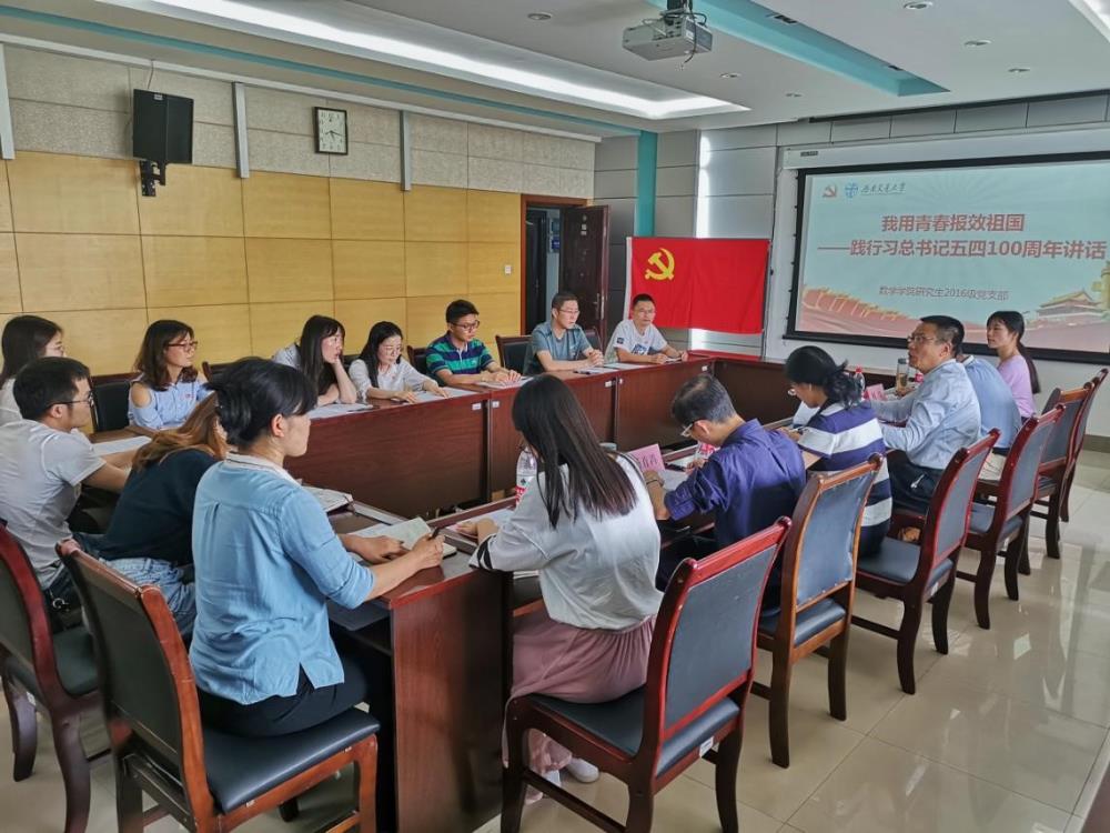 随后,党支部党员代表就学习践行习近平总书记五四重要讲话精神发言,分别表达了自己对习近平总书记重要讲话精神的认识理解以及践行贯彻的坚定决心。发言同学一致表明,新时代中国青年传承发扬五四精神,就是以习近平新时代中国特色社会主义思想为指引,投身实现中华民族伟大复兴的宏伟事业,不负党和人民的期望,不负这个伟大的时代。