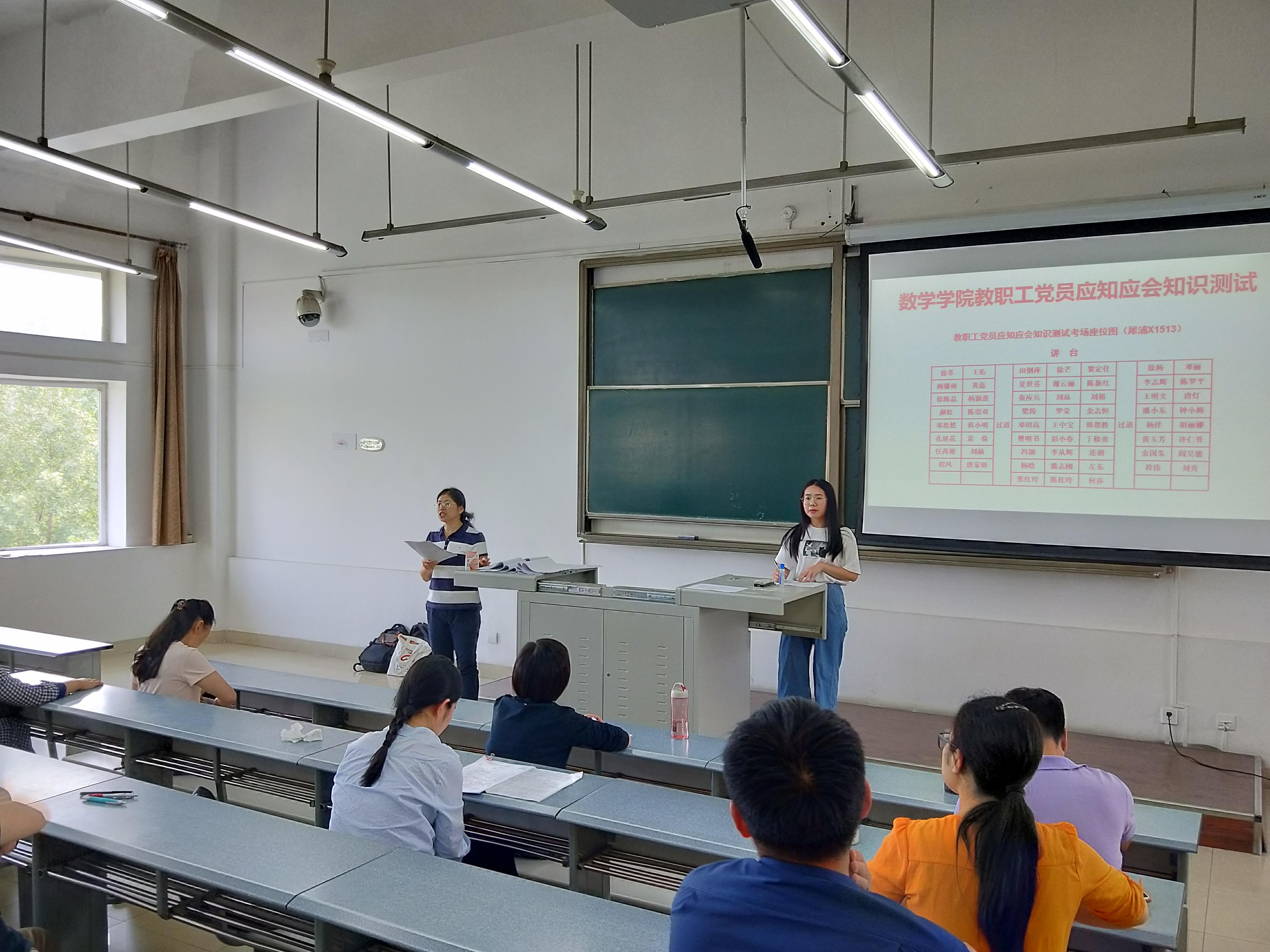 为深入学习贯彻习近平新时代中国特色社会主义思想和党的十九大精神,扎实推进“两学一做”学习教育常态化制度化,强化党员教育管理,提高教育质量,引导党员牢树“四个意识”、坚定“四个自信”、做到“两个维护”,结合巡视整改要求,根据学校党委组织部统筹安排,kaiyun开云官方网站党委于 2019年5月23日下午4:00-5:30,组织教工党员在X1513教室和峨眉E1435同步进行党员应知应会知识闭卷测试。