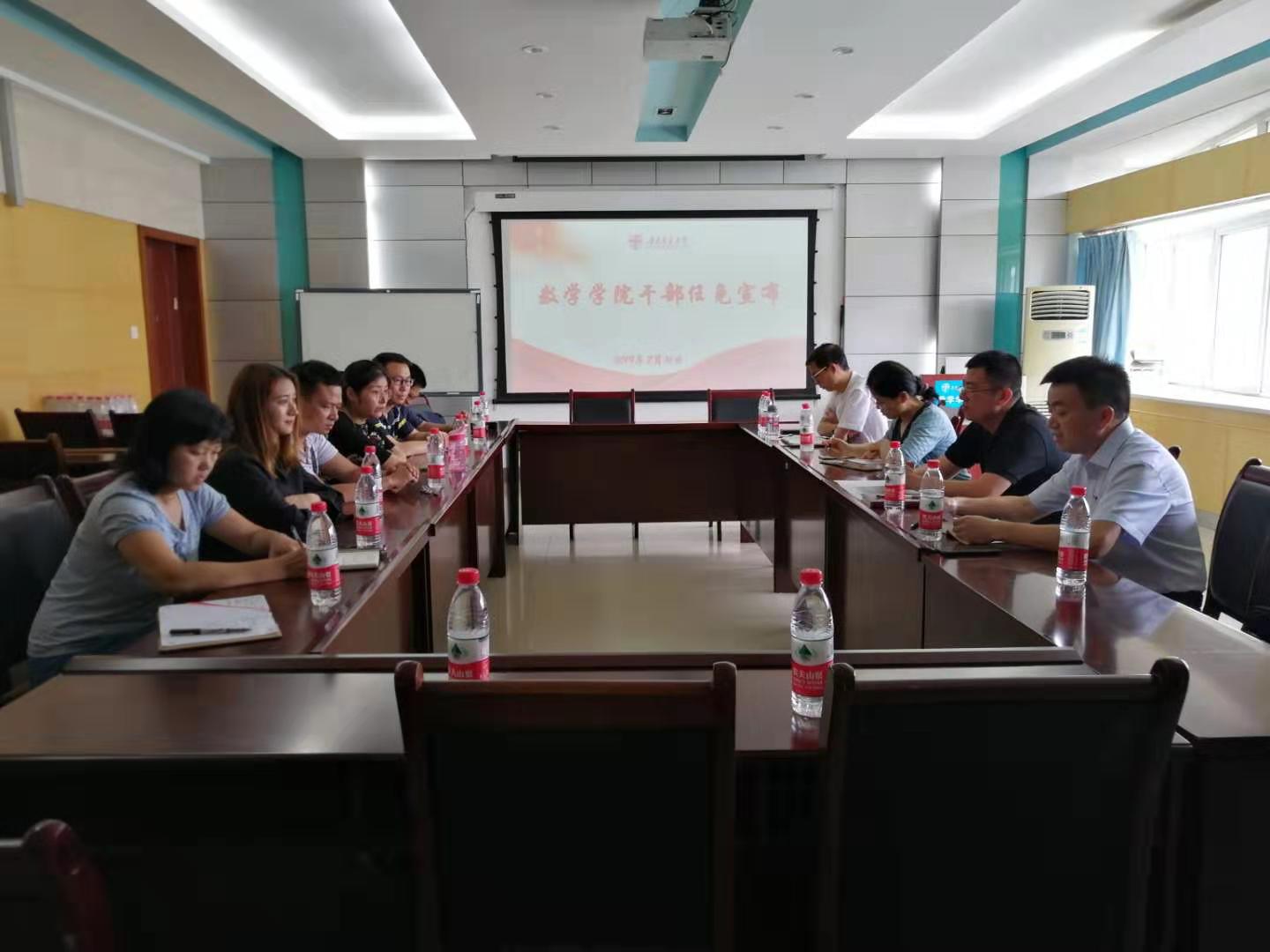 2019年7月16日下午,学院在2511会议室召开干部任免宣布大会。校党委组织部副部长沈哲同志、学院领导班子成员、学院机关干部、辅导员参加了此次会议,会议由沈哲同志主持。
