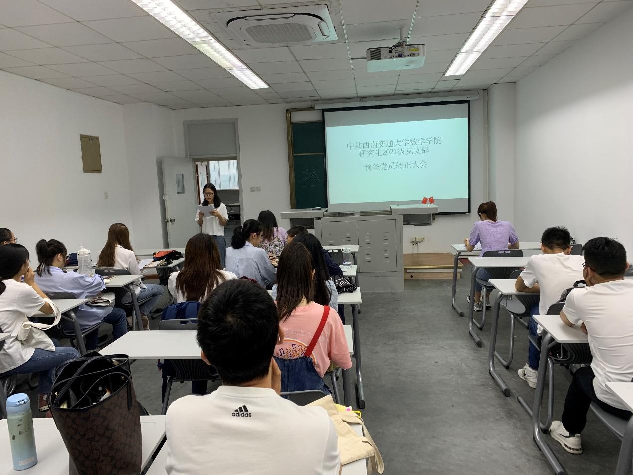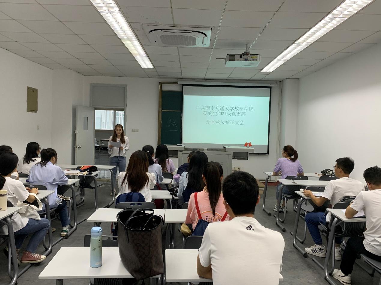 2021年9月14日,研究生2021级党支部于J4609B举行了丁雨、祝雪两位预备党员转正的党支部会议。本次会议由党支部书记王乐主持。