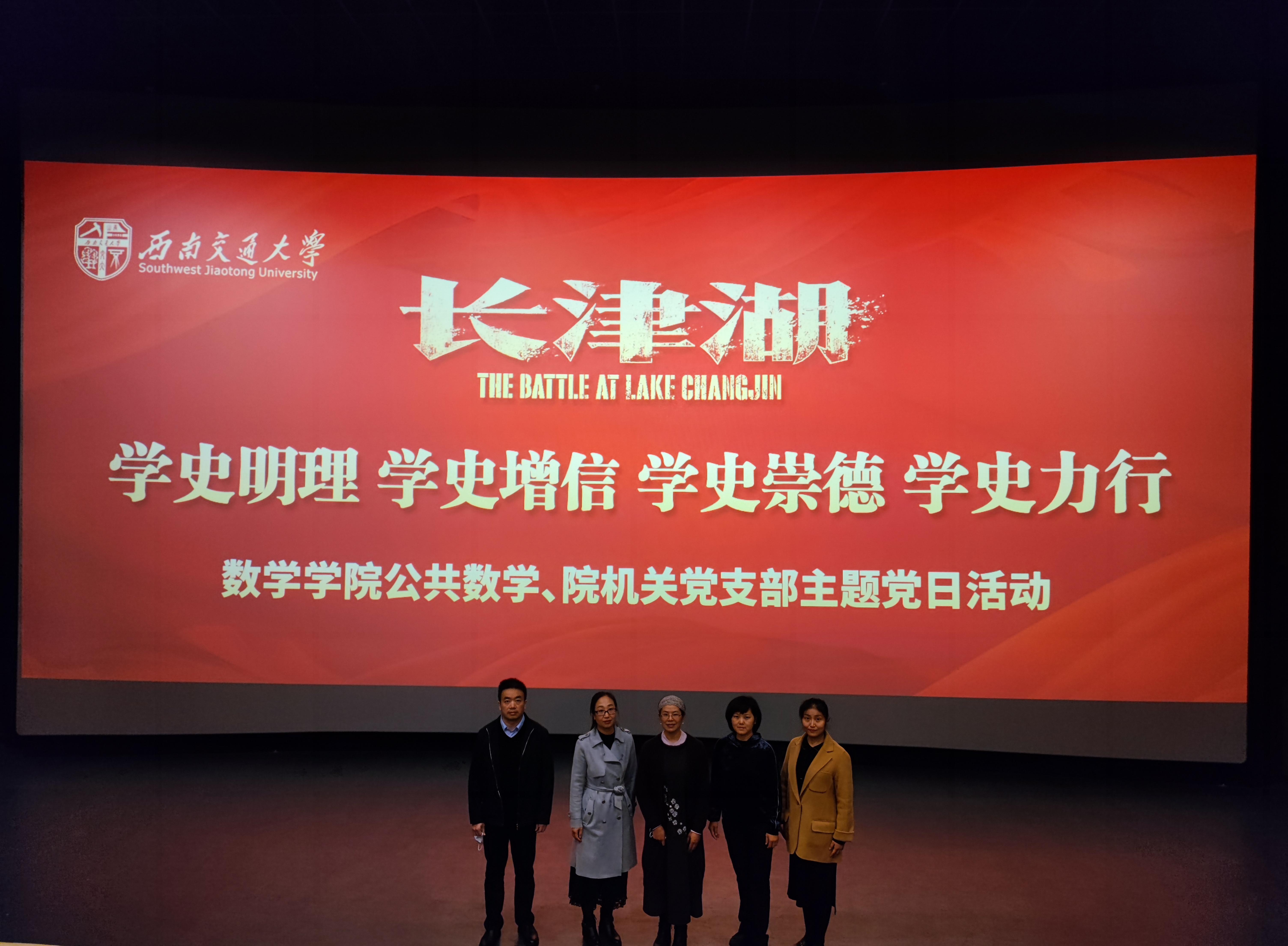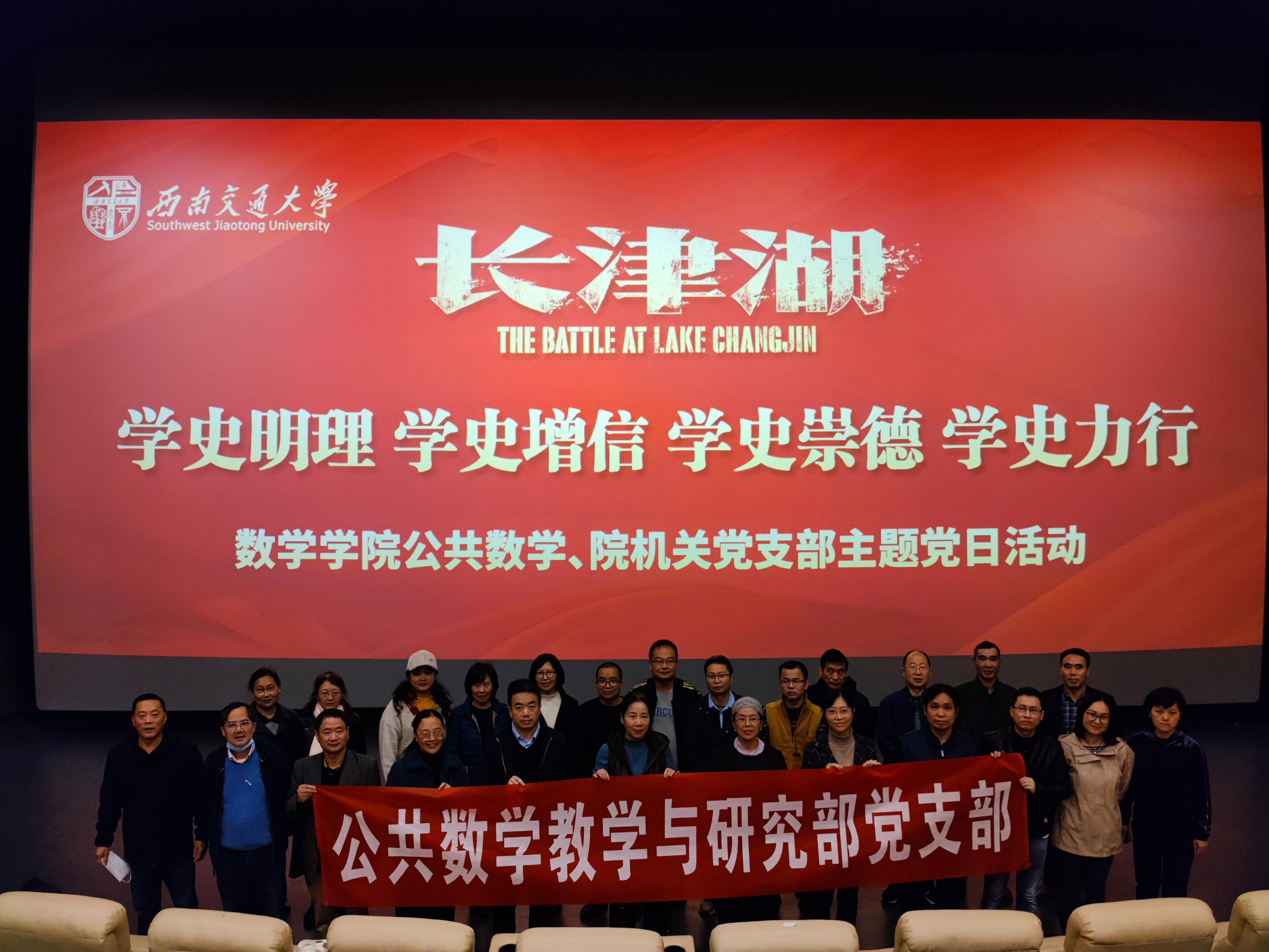 为庆祝中国共产党成立100周年,庆祝中华人民共和国成立72周年,纪念中国人民志愿军抗美援朝出国作战71周年,进一步扎实推进党史学习教育,弘扬爱国主义精神和伟大民族精神,激发党员和群众爱国爱党热情,10月28日下午,kaiyun开云官方网站公共数学教学与研究部党支部、机关党支部组织开展“学史明理 学史增信 学史崇德 学史力行——《长津湖》观影主题党日活动”。