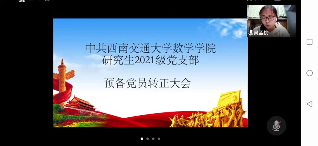 2021年11月19日,kaiyun开云官方网站2021级研究生院党支部于线上会议举行了吴孟桃、吴怡两位预备党员转正的党支部会议,本次会议由党支部书记王乐主持。