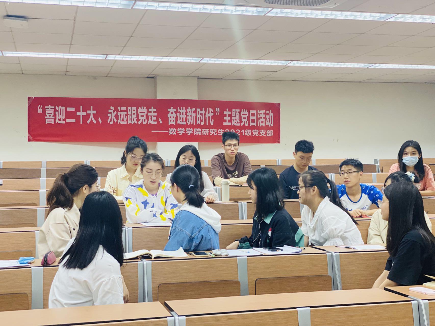 为进一步学习贯彻习近平总书记在中国人民大学考察时的重要讲话精神和在庆祝中国共产主义青年团成立100周年大会上的重要讲话精神,进一步统一思想、提高认识,kaiyun开云官方网站研究生2021级党支部于2022年5月16日晚7:30,在J4223开展“喜迎二十大、永远跟党走、奋进新时代”主题党日活动,活动邀请了负责学院研究生党建指导的邓思然老师现场指导,支部成员全员参与,党支部书记王乐主持。