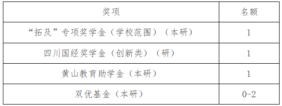 学院专项奖助学金 | 名额 | 奖励金额 | 评选方式 |