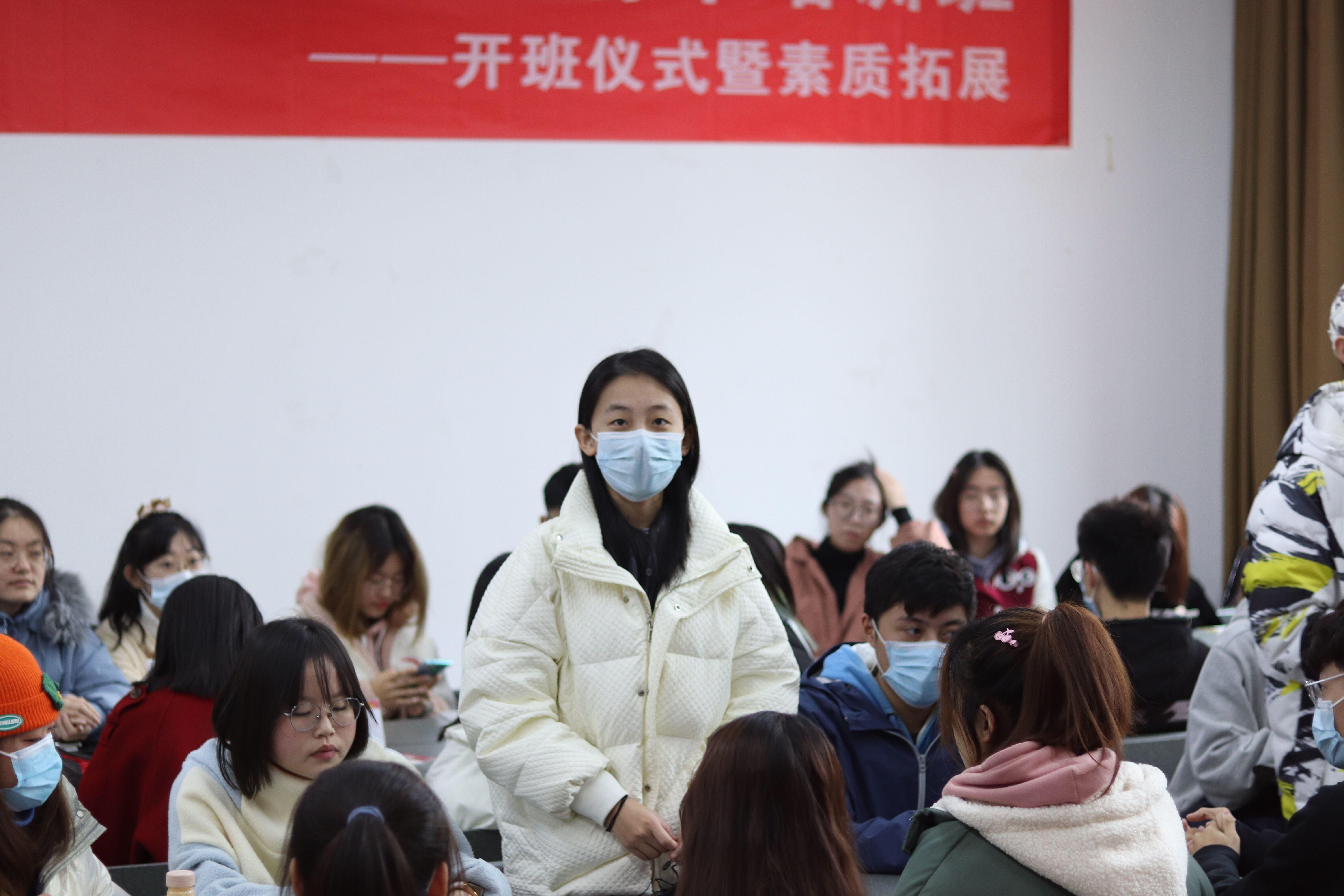 随后,邓思然老师向参会的学生干部表示欢迎。她首先强调了团队意识对于个人、集体的重要性,再次阐明了开办青马工程的原因,并指出同学们身为学生干部应当以强化青年思想引领、深化团支部班子建设、推进学生组织骨干建设为责任,她提出对学生干部的期望,希望其能带领kaiyun开云官方网站走向新的高度。在讲话的最后,她介绍了青马工程培训课程的详细内容。
