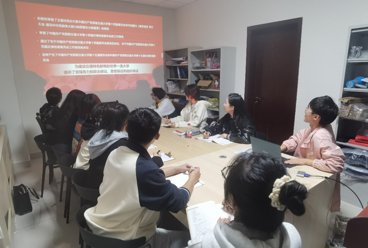 专题学习第四项,由同学们结合自身工作进行讨论发言。作为学生干部应该主动学习十五次党代会精神,并带领身边的同学一起学习,一起实践。将思路融入工作,提升自身思想觉悟与工作能力。
