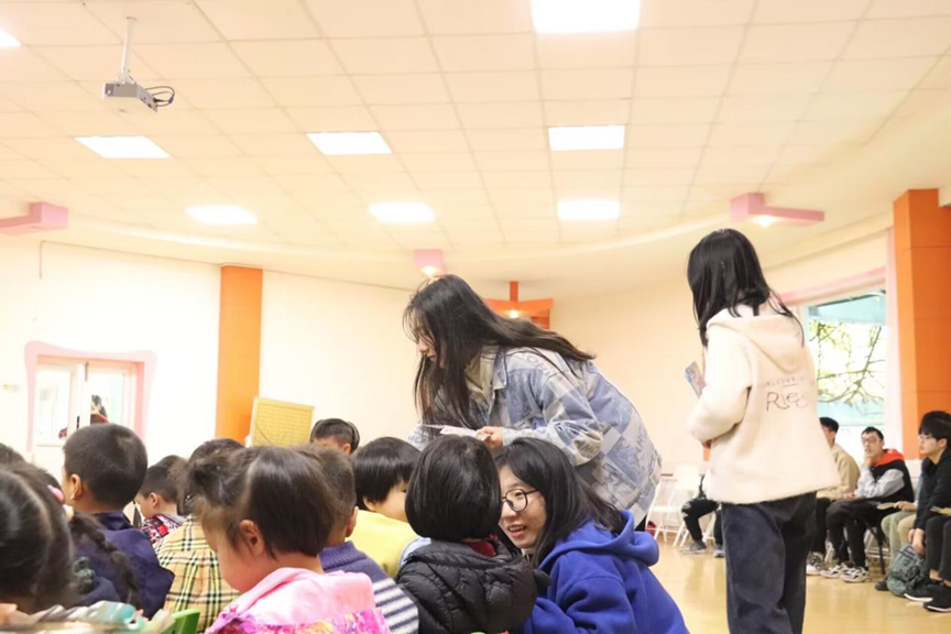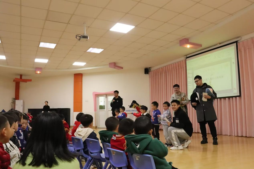 同学们将动物玩偶和保护动物的小游戏结合,与小朋友们进行互动。孩子们竞相举手上台参与,为保护动物贡献出自己的一份力量。传词游戏既能调动起孩子们的兴趣,又与之前的环节紧密结合。同时,同学们为小朋友们准备了适当的奖励,通过奖励贴纸的方式,拉近了同学们与小朋友之间的距离。