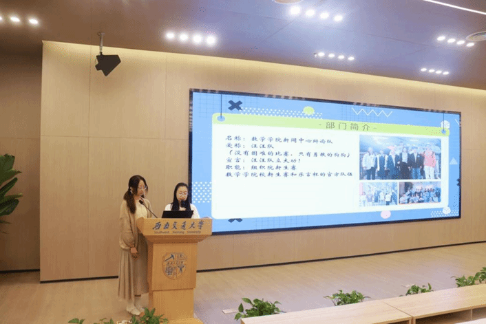 新闻中心向同学们先后介绍了新闻采编部、摄影技术部、运营宣传部的工作及部门负责人,通过一段诙谐幽默的短片展示了各部门的风采,表达对新成员的欢迎。随后新闻中心辩论队向新生们介绍了辩论赛及辩手职责,通过展示辩论比赛的准备过程和辩论队的团建活动让同学们感受到辩论队温暖、友好、和谐的氛围。