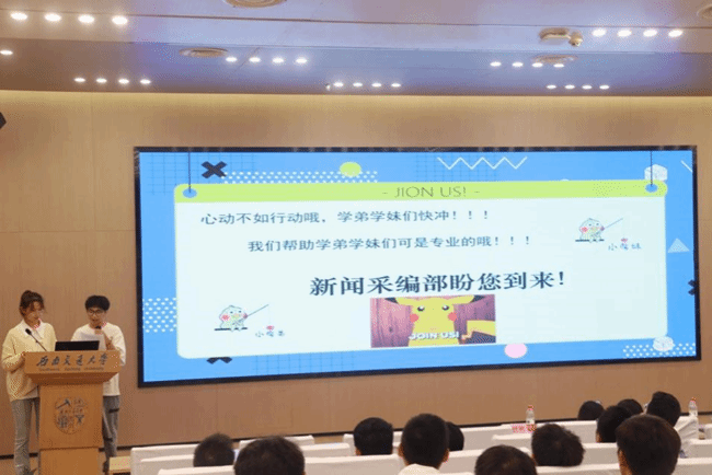 学生会的交流公关部、综合事务部、校园文化部及权益发展部依次进行宣讲,各部门负责人以严肃认真又不失幽默风趣的方式对学生会的相关工作进行分享。