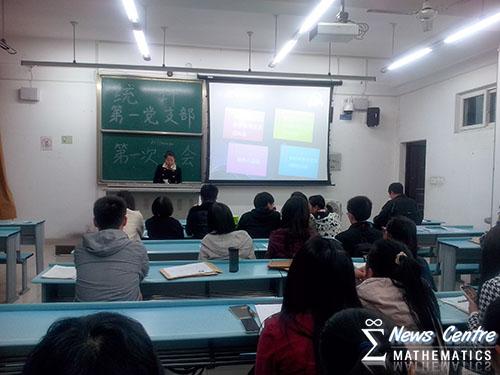11月2日下午6点整,kaiyun开云官方网站统计本科生第一党支部第一次大会正式开始,指导老师为团委副书记兼11级辅导员张娟老师,参加会议的是第一党支部的党员和入党积极分子。