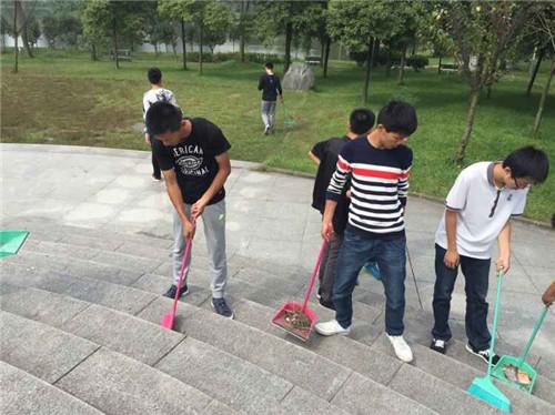按照事前的安排,男生主要打扫钟亭外围,而女生则负责石阶和地板的清洁。天气凉爽,大家均耐心、认真地完成自己的工作,细心地扫起地上的烟头、纸屑等垃圾。带抹布的同学负责石柱的清洁。有些小组积极帮助其他同学收拾垃圾,热情高涨。时间虽然有些仓促,但同学们高效率地完成本次清洁工作,钟亭及其附近的草地没有了垃圾的踪影。之后进行了素质拓展活动。