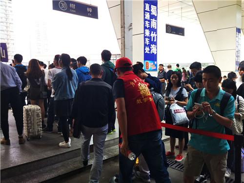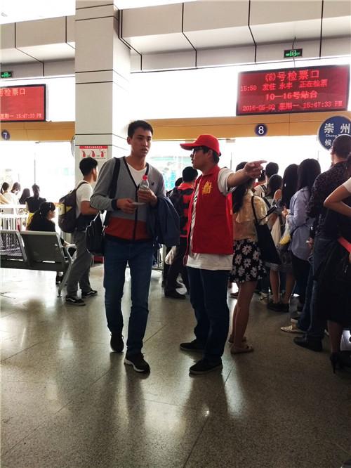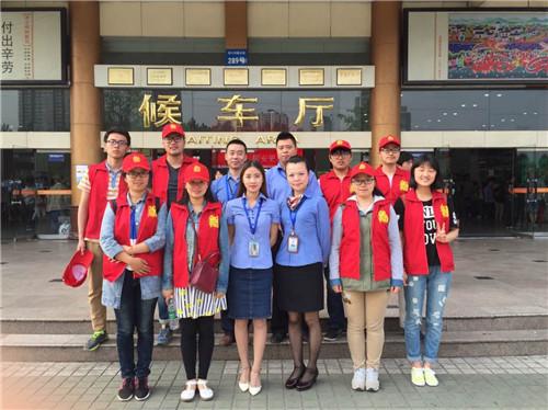 到了青城山站,雨势渐小,大家摆脱了雨伞的束缚,呼吸着清新的空气,正式踏上了本次志愿者活动之旅。