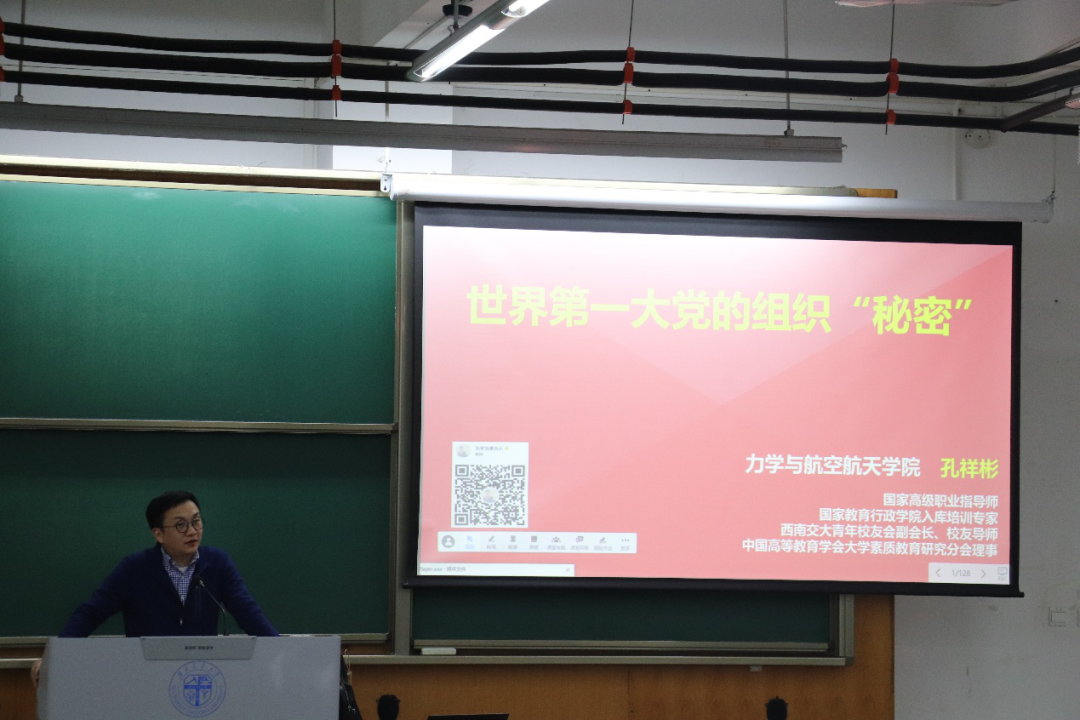 3月26日晚7时,第一讲“中国共产党的组织、纪律和作风”专题培训于X4357召开,主讲人为力学与航空航天学院党委副书记孔祥彬。孔祥彬副书记以“世界第一大党组织的秘密”为切入点,用幽默风趣生动的语言讲述了中国共产党得民心的关键所在——讲规矩、纪律严明、作风优良。