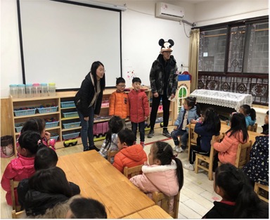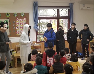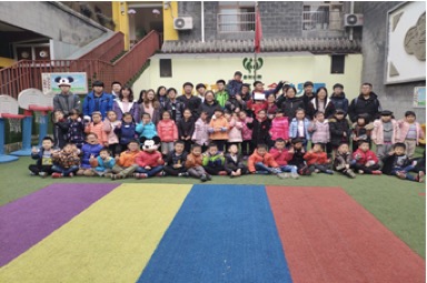 2018年11月28日下午一点二十,2018级数学与应用数学一班参与交通公益活动的同学们在开云南门集中,于下午两点二十进入郫县安靖三合幼儿园。