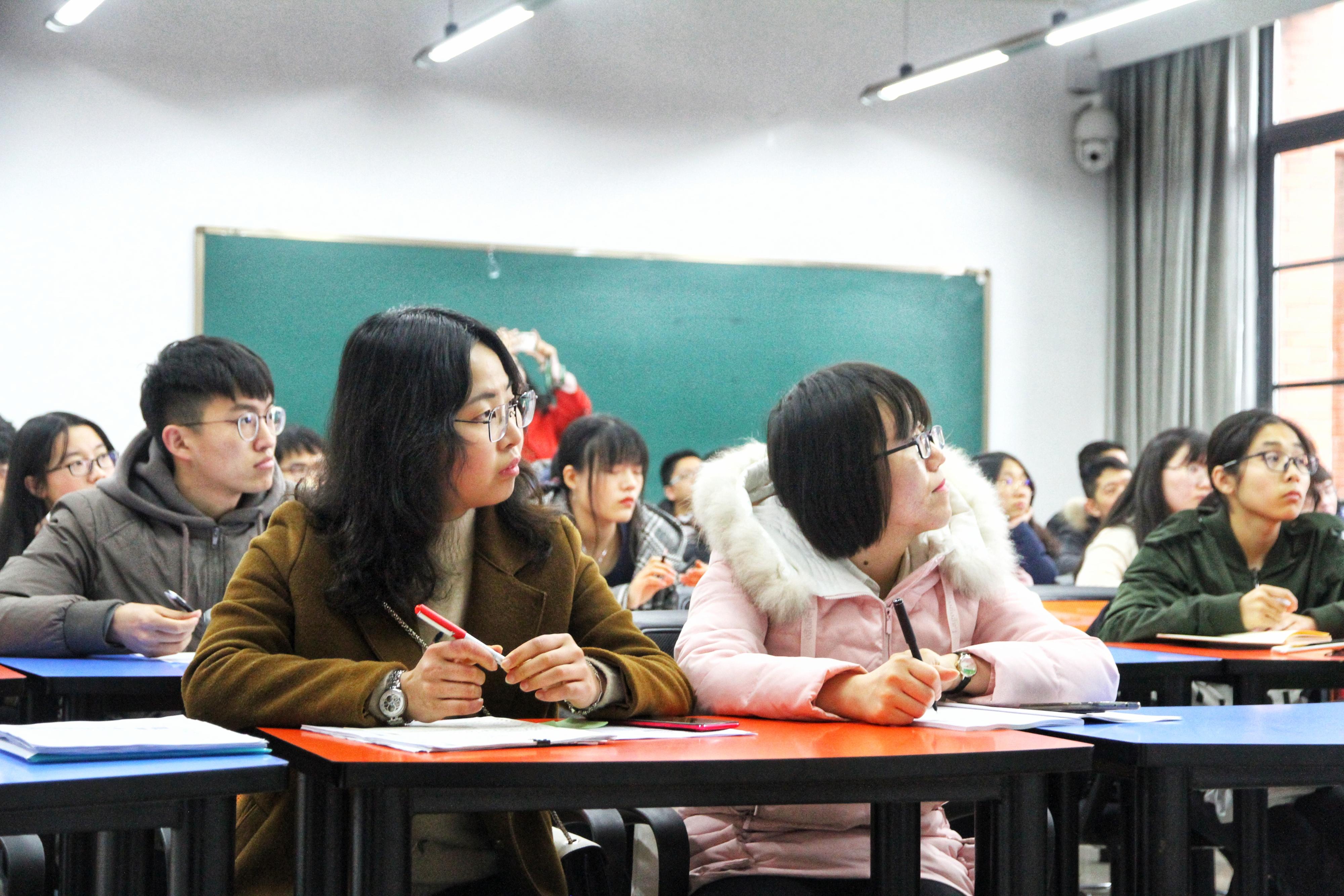 杨老师以“面试怎么过”作为主题,开始前先为同学们播放了一个关于面试的短视频让同学们初步了解面试可能会遇到的各种各样的情形。之后,杨子仪老师理性地分析了接下来12月份的研究生考试与6、7月份的就业并不冲突,并指出希望同学们提前了解就业为将来多准备一些出路。