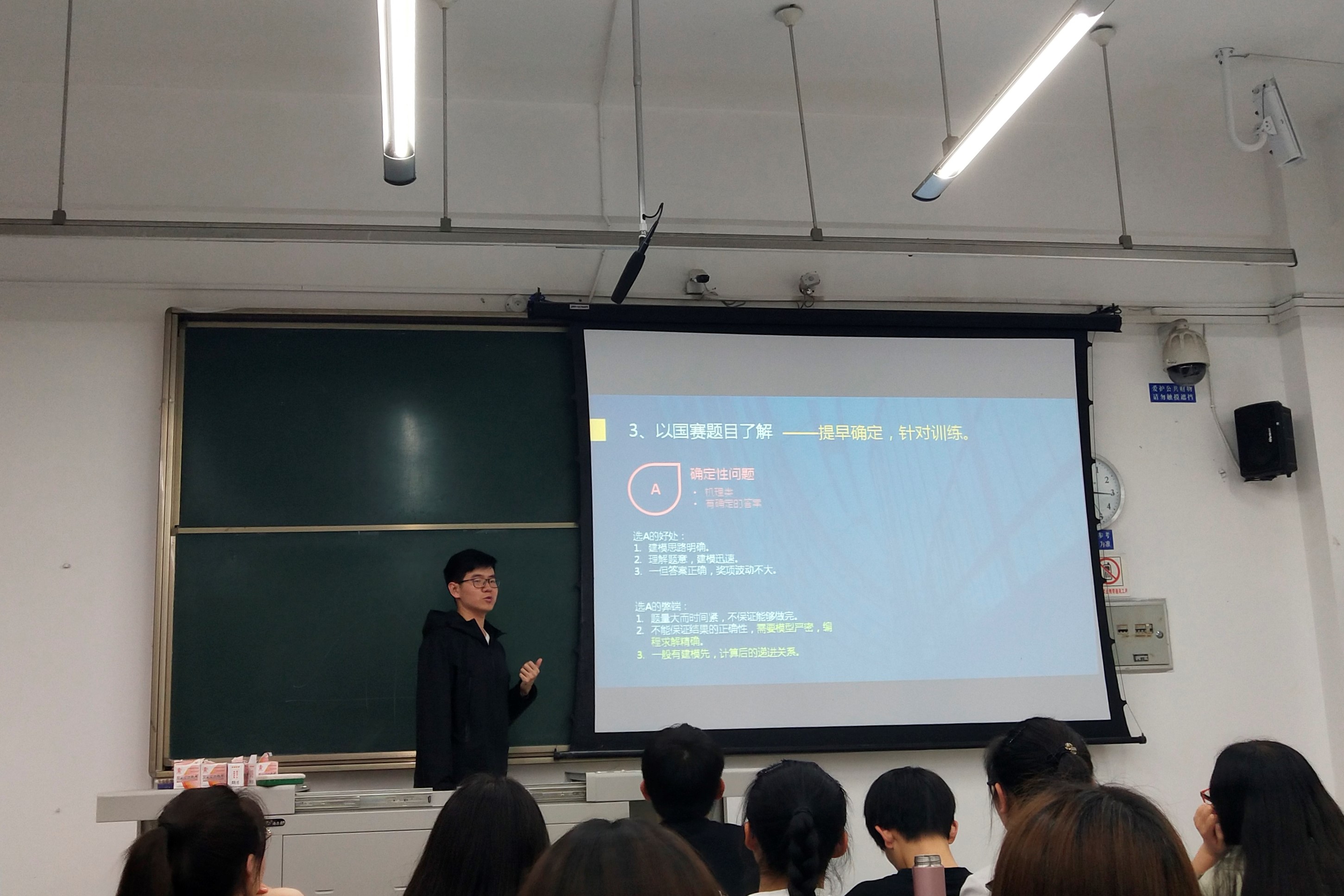 张嘉豪同学主要给大家强调了建模期间一定要诚信,不能参加有偿的关于建模比赛的讨论,并给同学们介绍了建模协会举办的建模相关讲座。