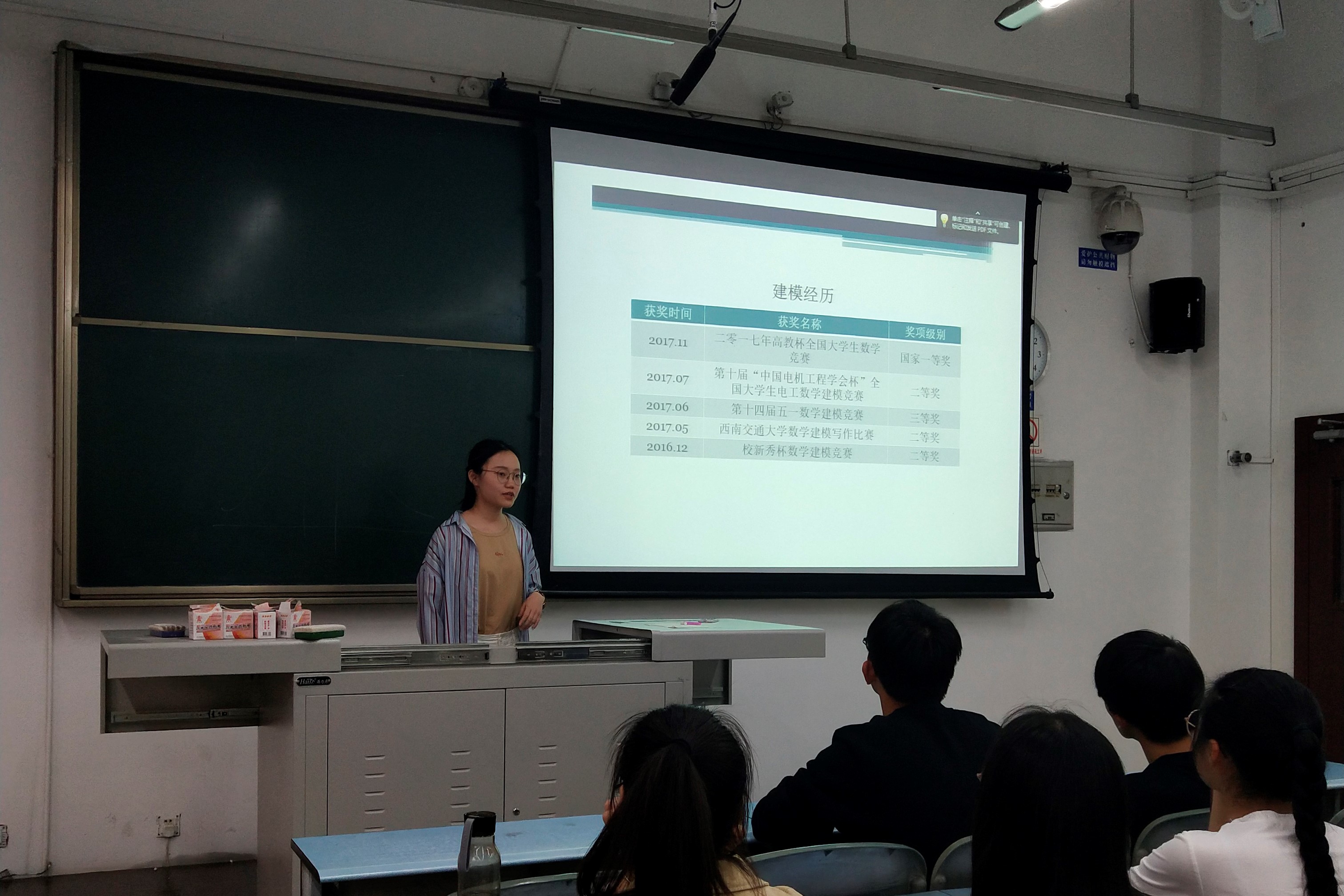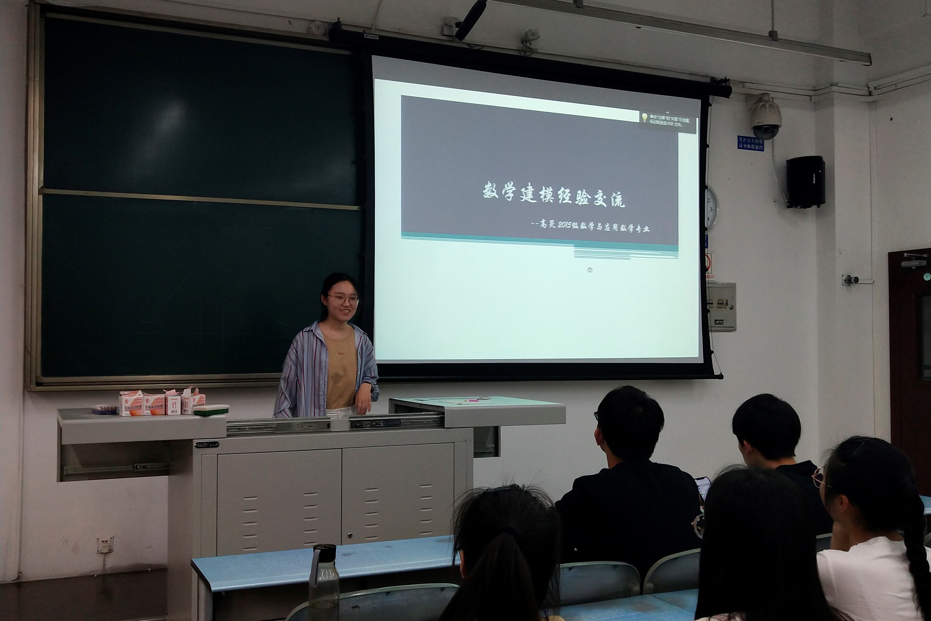 高炅同学曾获2017年全国大学生数学建模竞赛一等奖,她向大家推荐了一些有用的建模书籍和建模法宝,并以2017年国赛建模A题的例子具体给同学讲解了问题解决的步骤。