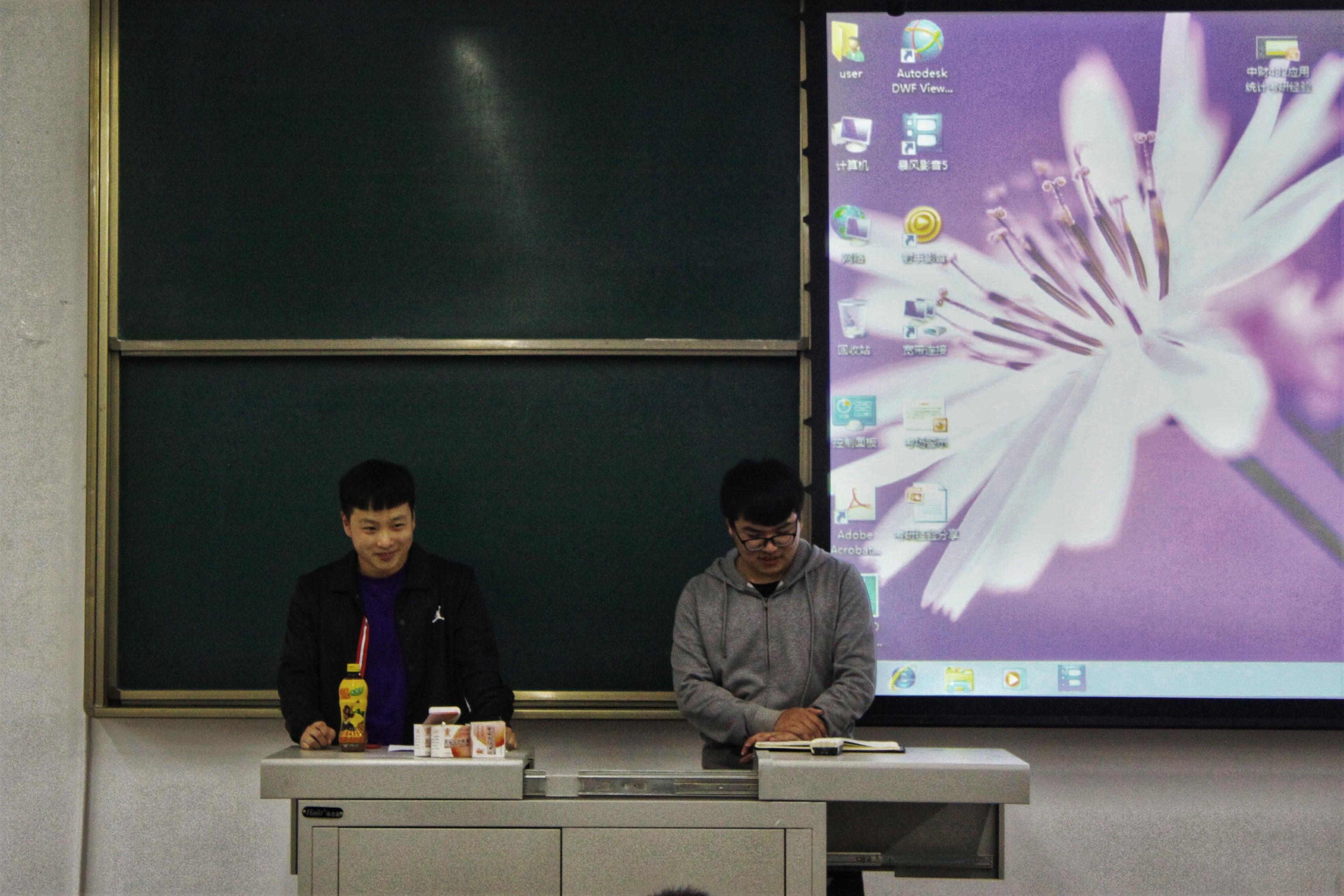 首先是由诸葛丞左和王晨两位同学进行分享。他们指出在学习方面应该有一个明确的规划—在不同阶段要完成不同的学习目标,在看书的同时也应当注意题量的积累。最后他们强调了在学习生涯中一个不言放弃、心态乐观的“革命战友”是重要的。