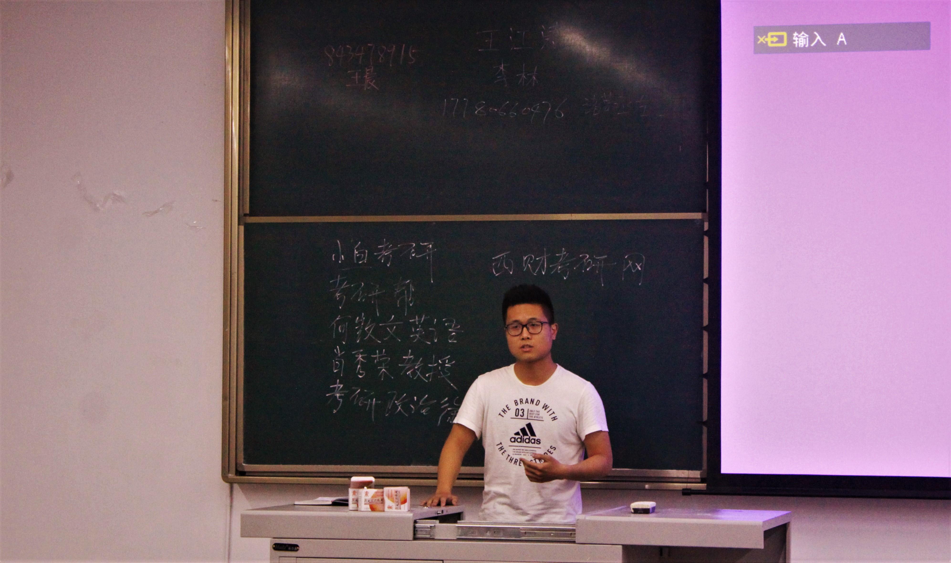 其次是崔文芊同学分享。她则针对不同科目细致入微的具体讲述了一些复习技巧。紧接着郑婷同学补充了备考的注意事项。而王调育同学强调了一个明确的目标对于自身的激励是重要的,并且他还向大家分享了自己学习所用到的公众号和软件。最后是由钱行健进行了补充,他表示同学们应该注意到自己未来选择方向的广阔性,不要局限了目前专业发展性,敢于去不同方面应用自己的所学。