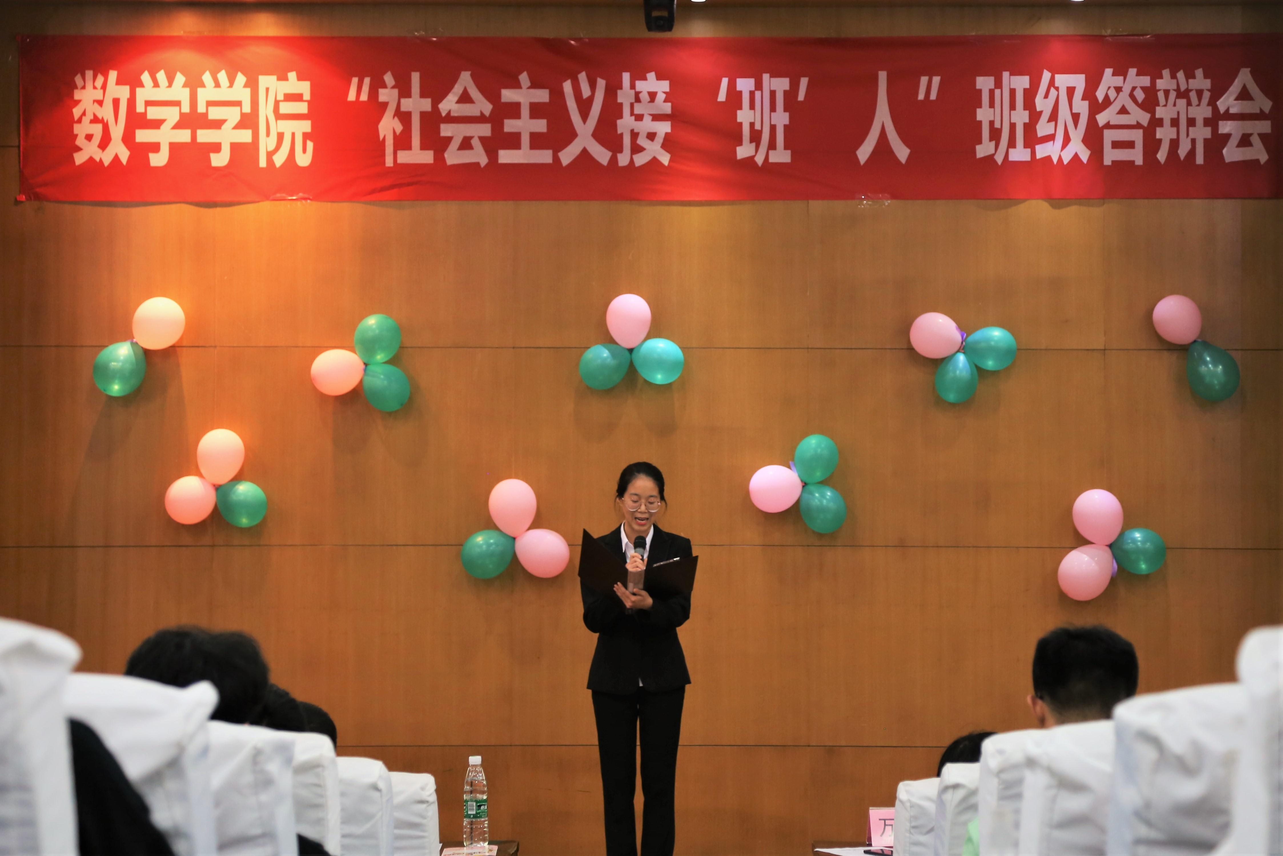 第二个进行答辩的是数学二班,周泽杨同学采用脱口秀的形式,带领观众们走进这个由35位来自五湖四海的同学组成的小家庭。他们灵活创新,他们团结向上,以辩论的创新方式展现可静可动的优秀数学二班。在随后的风采展示中,数学二班填词改编北京东路的日子,温馨地展现了我们可爱的大学生活。“做辛勤耕耘的二班人,做开拓创新的数学人”,他们一直在路上。