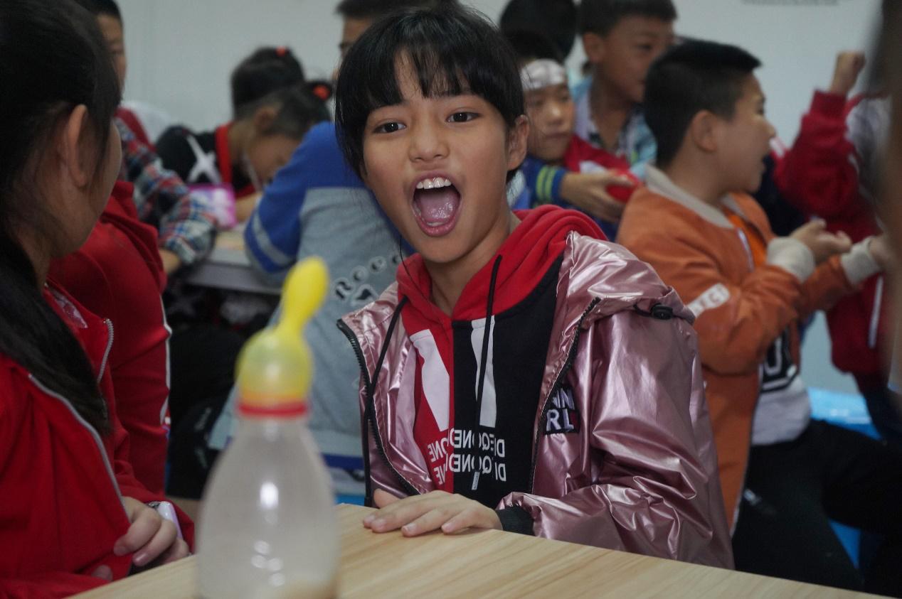 理论教学过后,进入大家期待已久的实验操作环节——“神奇吹气球”。由于教室条件有限,队员们准备了在保证实验效果下的最简易的实验装置。在孔维强同学讲解了实验注意事项和演示实验后,同学们被分为了8个小组,有序地展开了实验。这是孩子们第一次接触实验,大家都抑制不住内心的激动,小心翼翼地进行着每一个步骤。在实验过程中,大家也遇到了一些问题:购置的气球容易破,反应进行较慢等。不过,在大家的共同努力下,这些问题都得到了完美的解决。