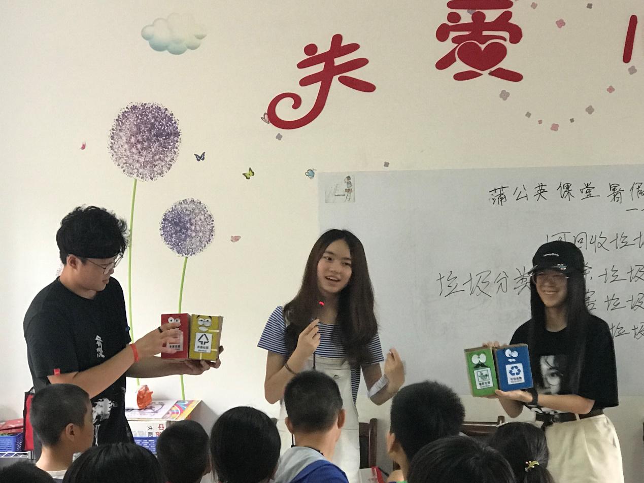 7月5日进行的是垃圾分类教学活动,由蒋名琪同学主讲,课程主要分为垃圾处理的现状、垃圾分类、除了垃圾分类还可以怎样保护环境这三个部分,以及垃圾分类的小游戏。由于此次课程与生活贴近且每一类垃圾都举了很多例子,孩子们参与度极高,表现出了极大的热情。在活动的最后,队员们向孩子们展示了用废纸箱做成的简易垃圾桶,并给了孩子们亲身体会垃圾分类的机会,活动进行的非常顺利。此次活动让孩子们认识到了垃圾分类的重要性,并提高了他们进行垃圾分类的意识。