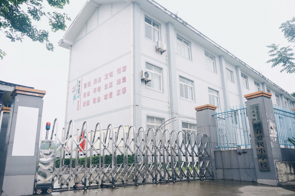 经过长达四小时零五十一分的绿皮火车行程以及半个小时左右的小货车车程后,红旗护卫队队员们到达了位于四川省自贡市三多寨镇的同春爱民小学校。三多古寨历史悠久,“三多”指多福,多寿,多男子的寓意。而同春爱民小学校是全面改善贫困地区义务教育薄弱学校基本办学条件工程项目,由中央斥资一百万新修建了综合楼,建筑面积700平方米。17年竣工的综合楼在绵绵小雨中显示出蓬勃的力量。