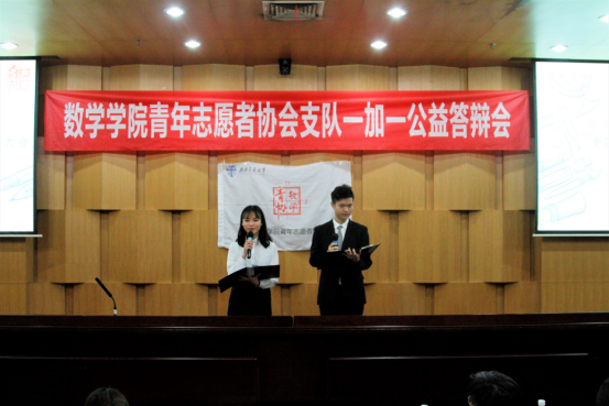 2019年11月21日,由kaiyun开云官方网站青年志愿者协会主办的“识数,索益”支队1+1公益答辩活动在开云图书馆二号报告厅顺利召开。本次活动共有6支队伍参与,并由我院青协指导老师、2019级辅导员和来自青志联、其他青协的代表组成的评委团队对每个团队的答辩进行点评和打分,最终遴选出了一、二、三等奖团队。