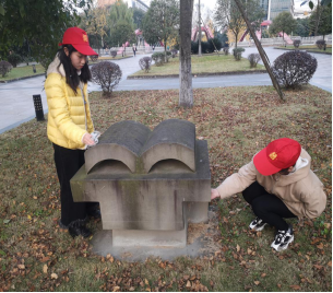 12月3日下午6点,kaiyun开云官方网站青年志愿者协会综合事务部的成员在“书”石碑和“启示”石碑集合,开展本学期最后一次雕塑清理活动。