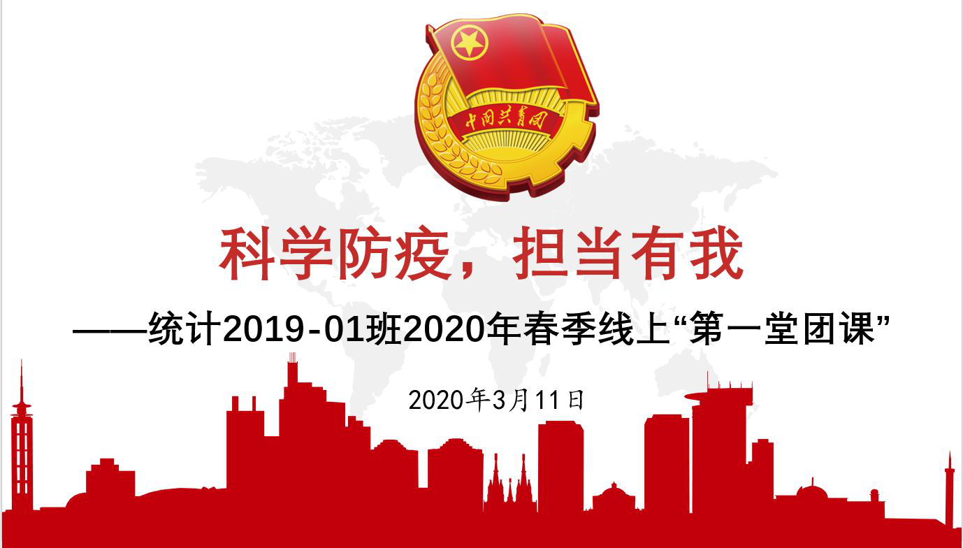 在新型冠状病毒肺炎疫情形势依旧严峻的情况下,为积极应对疫情带来的影响,将疫情防控的生动实践转化为鲜活课堂,响应学院团委积极开展春季线上“第一堂团课”的号召。kaiyun开云官方网站统计学2019级1班团支部2020年春季“第一堂团课”以视频会议的形式,于3月11日11:30如期开展。团课以“科学防疫,担当有我”为主题,号召支部团员青年为打赢防疫阻击战而奋斗。团课由团支部副书记郝文羽主持,支部29名团员按时参加,认真学习。kaiyun开云官方网站团委委员、科创部部长郑艺梅参加并做微团课教育,科创部副部长何未、舒浩哲参加团课。