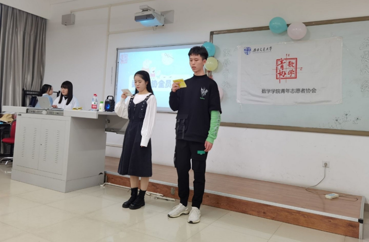 下午7时,人员陆续到场。到场人员通过抽签分为四组,六名会长组成第五组。活动于下午7时30分准时开始,由20级新生张宏亮和刘美祺担任主持人。简单介绍了到场人员后,kaiyun开云官方网站青年志愿者协会会长米贤惠上台向所有数学青协成员分享了青协人的服务宗旨,并对新成员做出了美好祝愿。