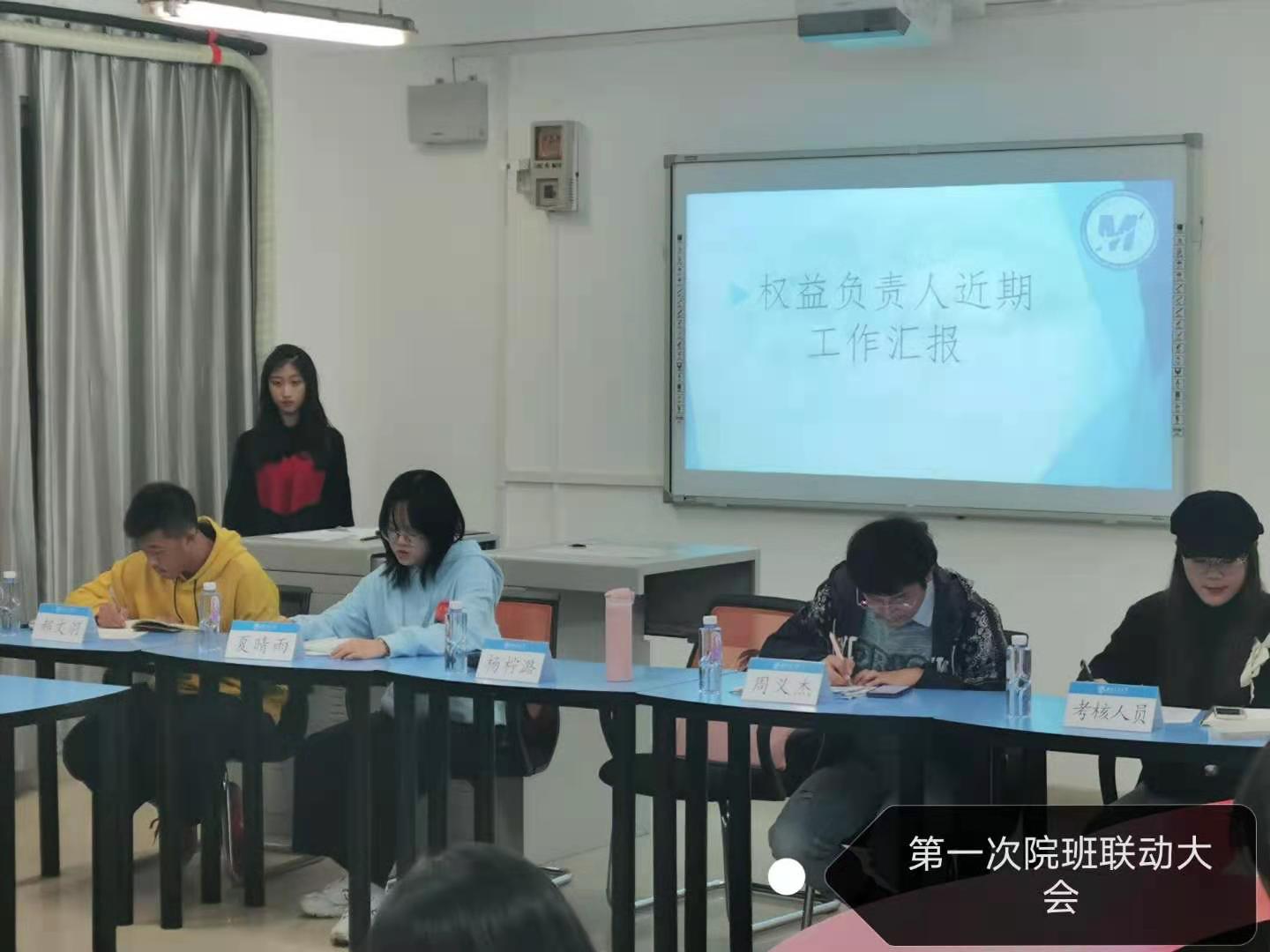 2020年11月11日21:15,kaiyun开云官方网站学生会权益部于x1105召开了kaiyun开云官方网站第一次联动大会。kaiyun开云官方网站各班权益委员按时到会,积极参与到本次会议中。