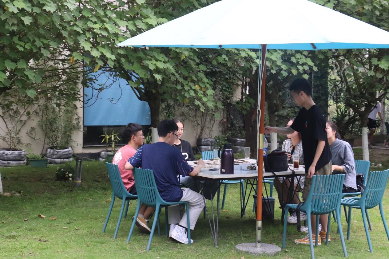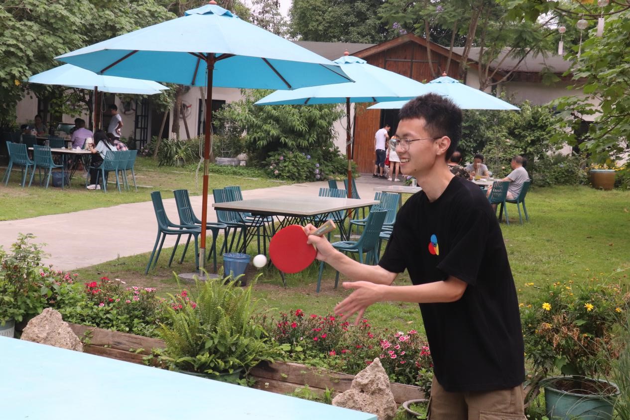 同学们也纷纷聚集在一起,相互交谈,谈笑风生;走到乒乓球台前,开始了激烈的比赛,在运动中享受快乐,黄磊老师和王亚梅老师也纷纷加入到同学们中。聚餐环节,王亚梅老师总结到:统计学2019级1班氛围融洽,团结互助,两年来在学习、文体、竞赛等多方面都取得了优异的成绩。黄磊老师也希望同学们学会劳逸结合,通过此次活动放松身心,密切同学与老师间的联系,并抓紧投入到期末考试的准备与复习中,预祝同学们能够在期末取得满意的成绩。
