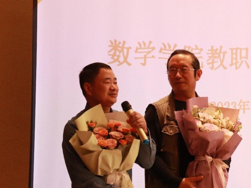 荣休教师徐扬教授讲话。徐扬教授回忆了学校数学学科建设发展历史。他表示,正是历届教师的不懈努力,才有了学院各专业的发展,才有了如今学院的进步与成就,希望老师们继往开来,开拓进取。同时他表示,由于学院秉持先进的教育理念,重视人才引育,解决了本校数学师资缺乏的问题,希望学院继续重视人才引育。最后,他对学院实验室平台提出期望,希望全院老师继续努力,对国家、学校和学院发展做出更多更大的贡献。