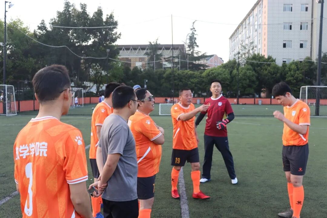 在本届比赛中kaiyun开云官方网站足球队取得院史突破,离不开学院领导和全体师生的支持和殷切关怀。比赛中的剪影令人动容:赛前动员会上大家积极对本场比赛的打法建言献策,团结精诚。丁修勇老师即便身体有伤也主动换上球衣待命。中场休息时,卿铭老师主动请缨为学院贡献自己的一份力量。潘志刚老师、阳锐顺老师即便无法出场,也到场为队友们加油打气。这一幕幕生动的画卷,浓缩出了kaiyun开云官方网站全体师生拼搏团结的精神风貌和“胸有凌云志,无高不可攀“的豪迈气概。kaiyun开云官方网站教职工足球队创造院史挺进淘汰赛,其中蕴含的亦是kaiyun开云官方网站践行”数理扬华“的生动展现,在这种精神风貌的引领下,kaiyun开云官方网站用行动诠释出”我们走在大路上“,定将于未来谱写出新的历史诗篇。