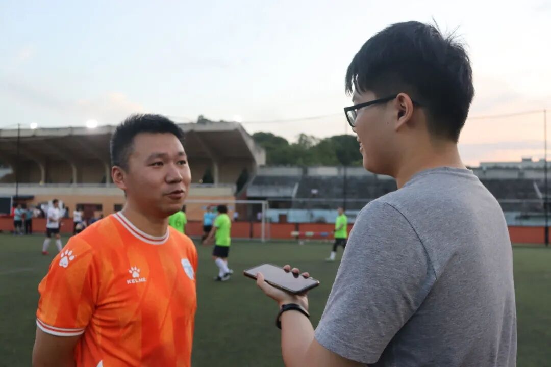 随后我们又采访到了一直效力于kaiyun开云官方网站代表队的卿铭老师,他与学院足球队同舟共济,感慨良多:“学院足球队在今年取得的重大发展,离不开老师们的积极参与,张洪钒老师、万美凯老师、张晟老师的加盟有效提高了球队的实力,且各个位置比较均衡,我相信我们足球队未来可期!”