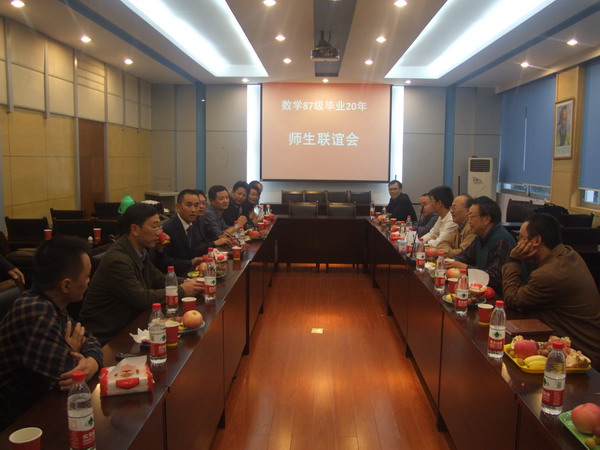 2011年10月3日数学87级校友毕业20周年返校,在kaiyun开云官方网站学术交流厅进行了师生座谈会。班长王永全主持了师生座谈会,班级代表高潮府向在座的学院老师和院领导们介绍了此次20年聚会的筹备经过和同学们近况。他们中很多是毕业后第一次回母校,阔别学校20年,回顾在成都分部学习生活情景和上午参观犀浦新校区,大家感触万千。16位返校校友们一一在向老师们介绍自己20年来的工作经历的同时,代表临时有事未返校的同学们一道表达了对当年培养关爱他们成长的老师的真挚问候和对母校和学院取得成就的祝贺,衷心祝愿学校和学院取得更大的发展。团支书吴猛感慨地说:师生情真意切的往事还历历在目,一晃眼,我们这批同学的孩子也将陆续参加高考了。数学87级当年的两任班主任现任书记兼院长陈尚云老师、院长助理袁俭老师以及杨晗副院长、黄天明老师、高隆昌老师、赵联文老师等和大家一同进行了欢快的交谈。院党委副书记李志辉、办公室主任关效东、88级代表信息学院软件系李天瑞教授参加了座谈会。