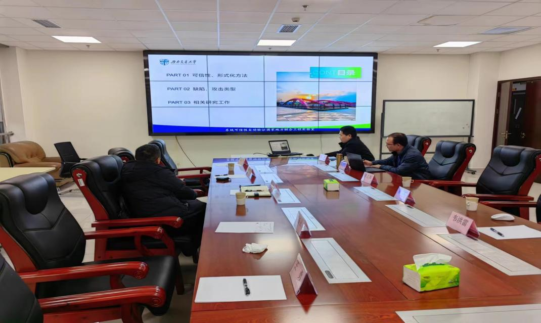 国信金宏董事长周建介绍了“国信金宏”的性质、成立和成长历程,其服务对象是信息技术与电子政务用户,为第三方提供质量认证、功能验证和安全验证。目前已经取得许多项行业认可的和国家许可的资质,但缺乏系统的基础研究和工具开发。通过参观和座谈交流,了解到系统可信性自动验证国家地方联合工程实验室具有这方面的优势,而且对形式化验证成果、自动逻辑推理验证工具兴趣浓厚,期望后续增进了解,寻找合作机会。