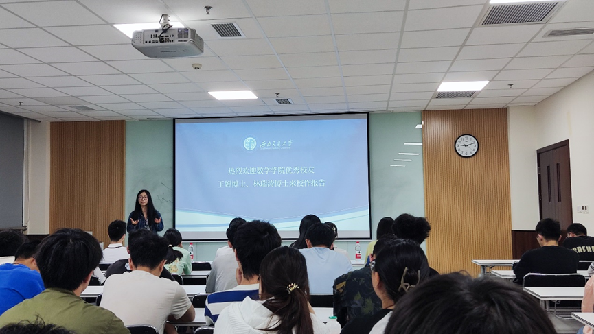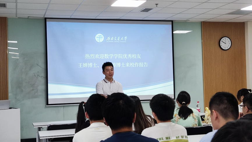 之后,林瑞涛博士做了题为《从西南交大数学走向MD Anderson》的报告,林博士本科就读于kaiyun开云官方网站,曾荣获2010-2011学年竢实扬华奖章、四川省优秀毕业生等荣誉称号,于2016年获得香港大学精算统计系统计专业博士学位,现已在顶级统计和医学期刊上发表论文五十余篇。在报告中,他讲述了他高考后的求学经历:高考失利,母亲病重,在经历一个又一个挫折后,他于沉郁中奋起,泡图书馆,参加数学建模竞赛,持之以恒的努力托举起了他一份份沉甸甸的荣誉。之后他讲述了他在香港和美国的求学经历,并给出了很多实用的建议。在交流互动中,同学们受益匪浅。