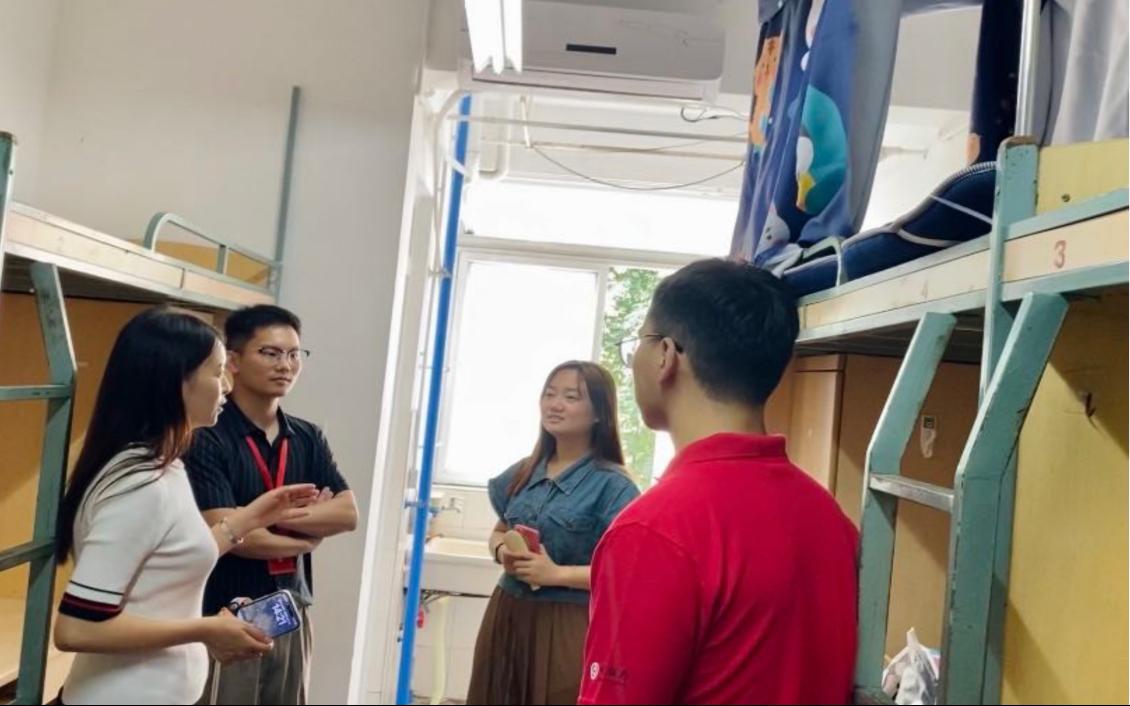 kaiyun开云官方网站党委书记徐革、院长杨晗、党委副书记黄祥、团委书记邓思然,辅导员周义杰、王政慧、吕薇到迎新点了解迎新工作。9月1日下午,辅导员到新同学们的宿舍走访交流,询问和生活住宿等方面的问题,新生们表示了对住宿环境的适应。