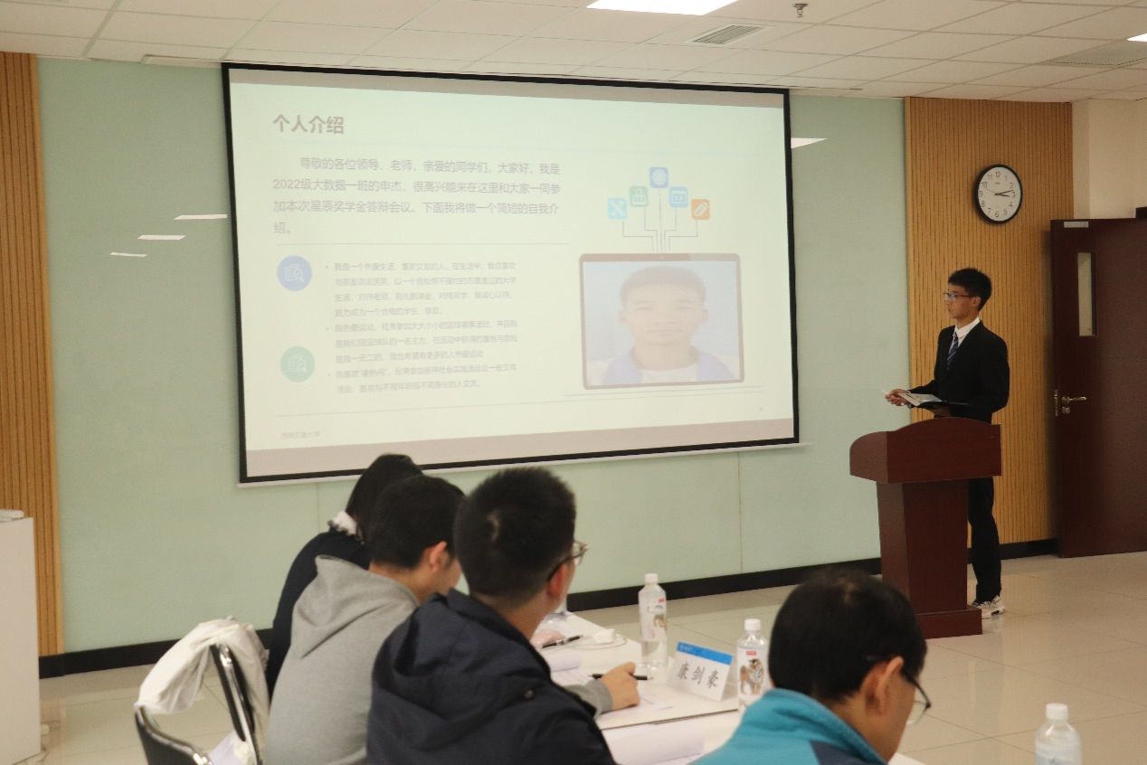 答辩开始之前,王政慧老师介绍了评选的规则。首先进行的是本科生星辰天合奖学金的答辩。答辩人们从专业成绩、获奖情况以及社会经历等方面充分展示了各自在过去一年中的成果,展现了他们优秀的综合素质及对学业科研的不懈追求。