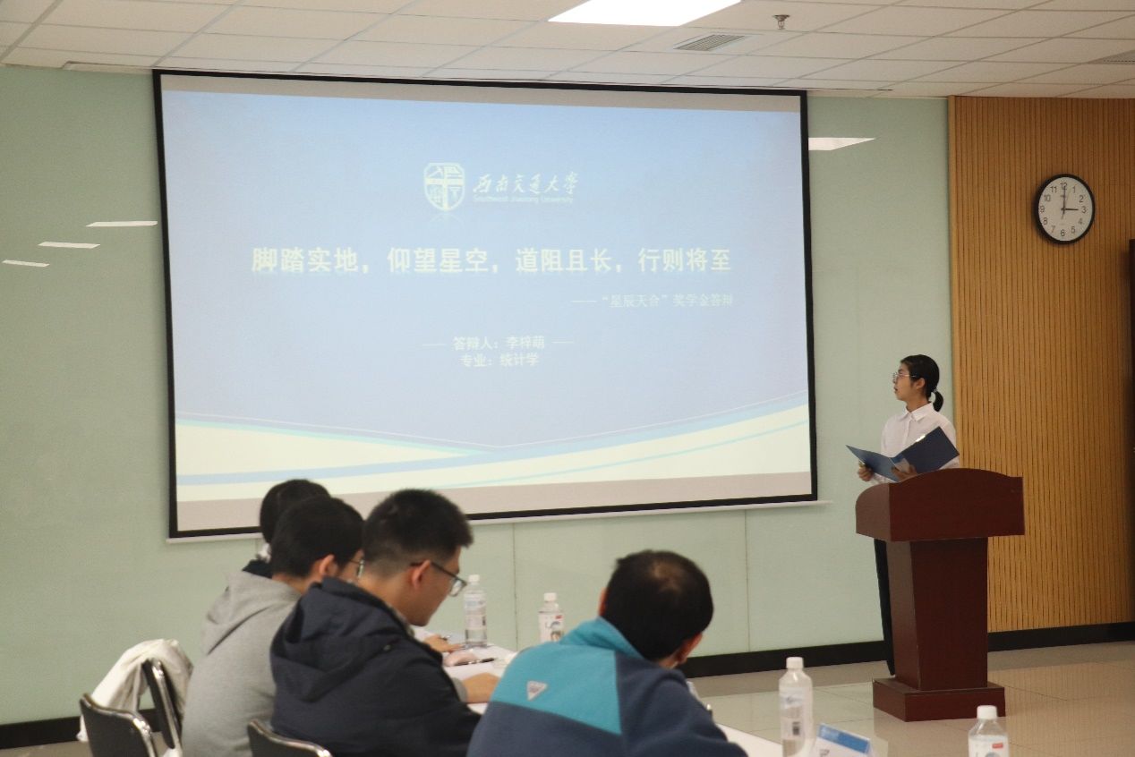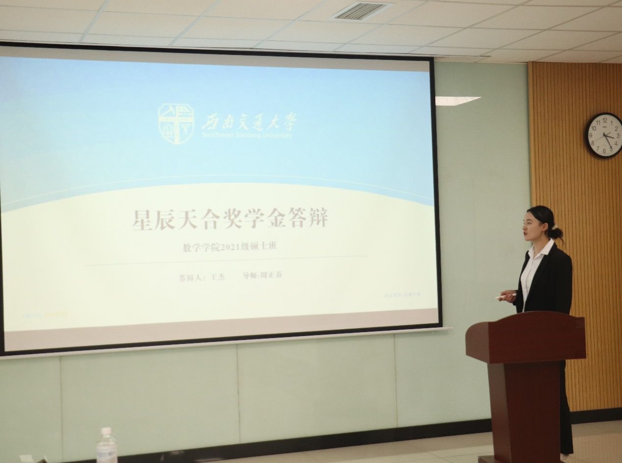 接下来进行的是研究生星辰天合奖学金的答辩。答辩人从自身丰富的学术成果展开答辩。他们熟练掌握专业领域知识,在实验中灵活应用新兴技术,刻苦钻研前沿新兴问题,充分展现了交大数学人的研究能力与创新能力。