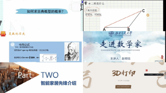 凡心所向,素履以往。为将“学习辅导、生活引导、心理疏导、兴趣培养”结合起来,经过前期一个多月的沟通、选题、备课,实践队最终确定本次授课主题为数学与科学,该选题涵盖概率、几何、复数、数学家轶事、数学应用、智能对话以及3D打印等内容。志愿者们本着认真负责的态度为小朋友们上好每一节课,以热情感染每一位小朋友,弘扬志愿精神。