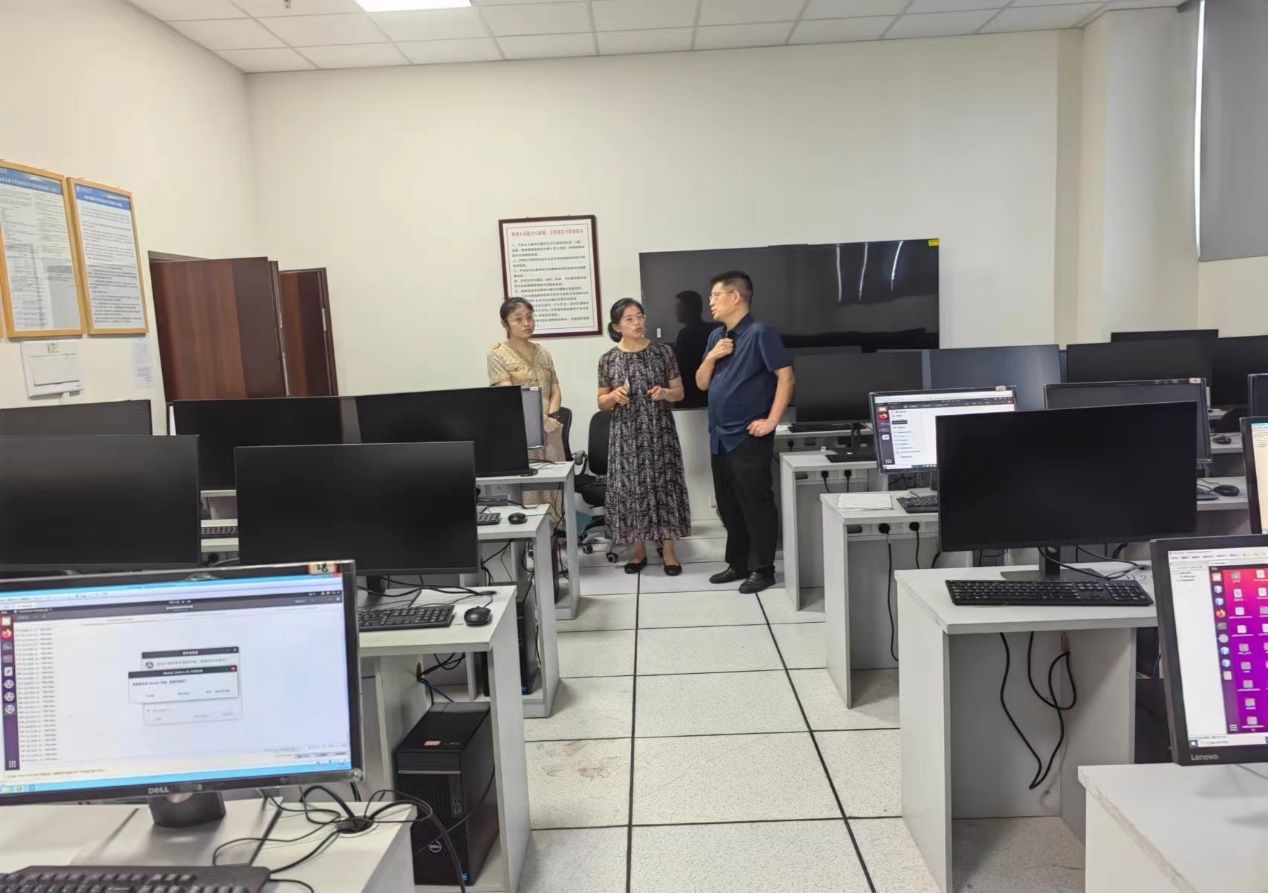 最后,检查组来到公共数学教学研究基地、数据科学与智能计算实验室、系统可信性自动验证国家地方联合工程实验室、数学实验实践中心、数学与信息交叉实验室,按照教育部与学校的实验室安全管理制度,重点检查了实验室的安全隐患,提出了相关整改意见:实验室定期开展安全检查与卫生情况整顿工作,将部分插座固定安装在实验桌侧面,实验室物品摆放力求整洁规范,严格落实离开实验室打卡制度,切实做好暑期防汛、高温等预案以及安全隐患闭环管理工作。