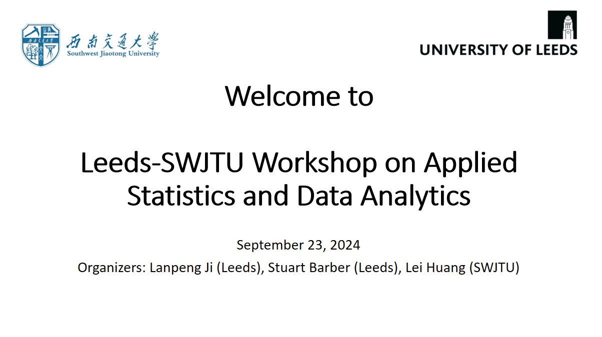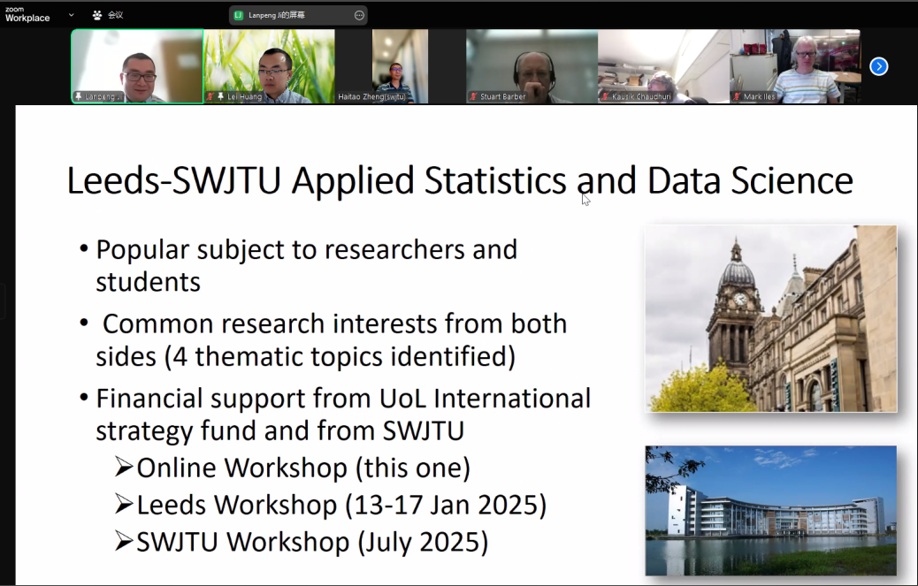 2024年9月23日晚上19点至22点,英国利兹大学(University of Leeds)-kaiyun开云官方网站应用统计与数据分析研讨会在Zoom会议平台线上举行。来自利兹大学kaiyun开云官方网站统计系、健康科学研究所、运输研究所,和kaiyun开云官方网站统计系、数据科学系以及交通运输学院共计37位老师和两校部分硕博士研究生参加了本次研讨会。研讨会议由利兹大学kaiyun开云官方网站的Lanpeng Ji,Stuart Barber和kaiyun开云官方网站的黄磊老师联合主持。