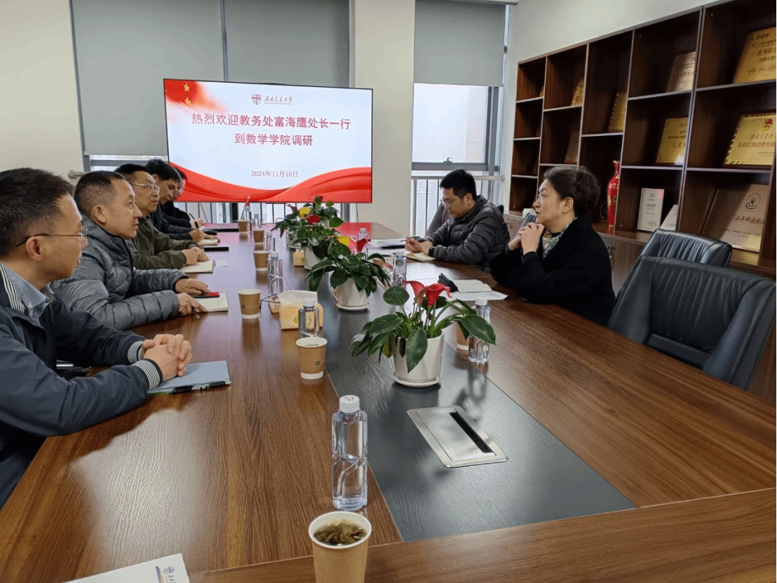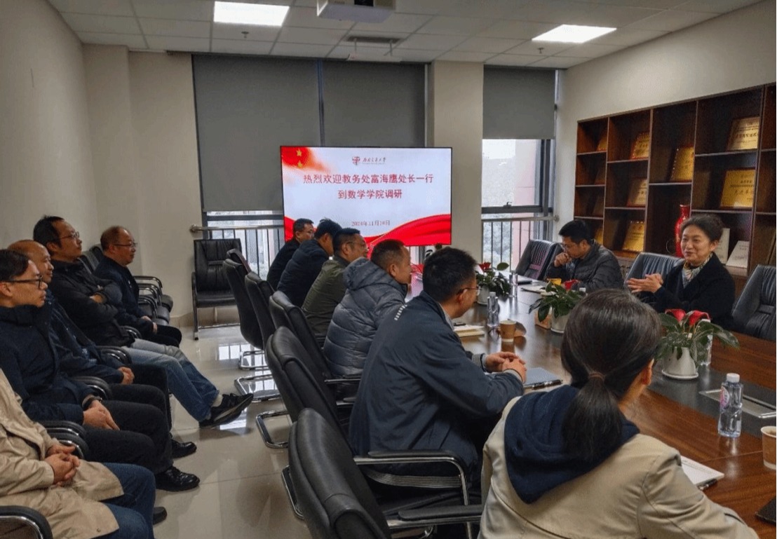 2024年11月18日,学校教务处富海鹰处长、创新与实践教学办公室李静波主任到kaiyun开云官方网站,对我院数学建模团队进行了调研交流。kaiyun开云官方网站杨晗院长、王璐副院长、潘小东副院长以及数学建模团队的全体老师参与了此次会议。